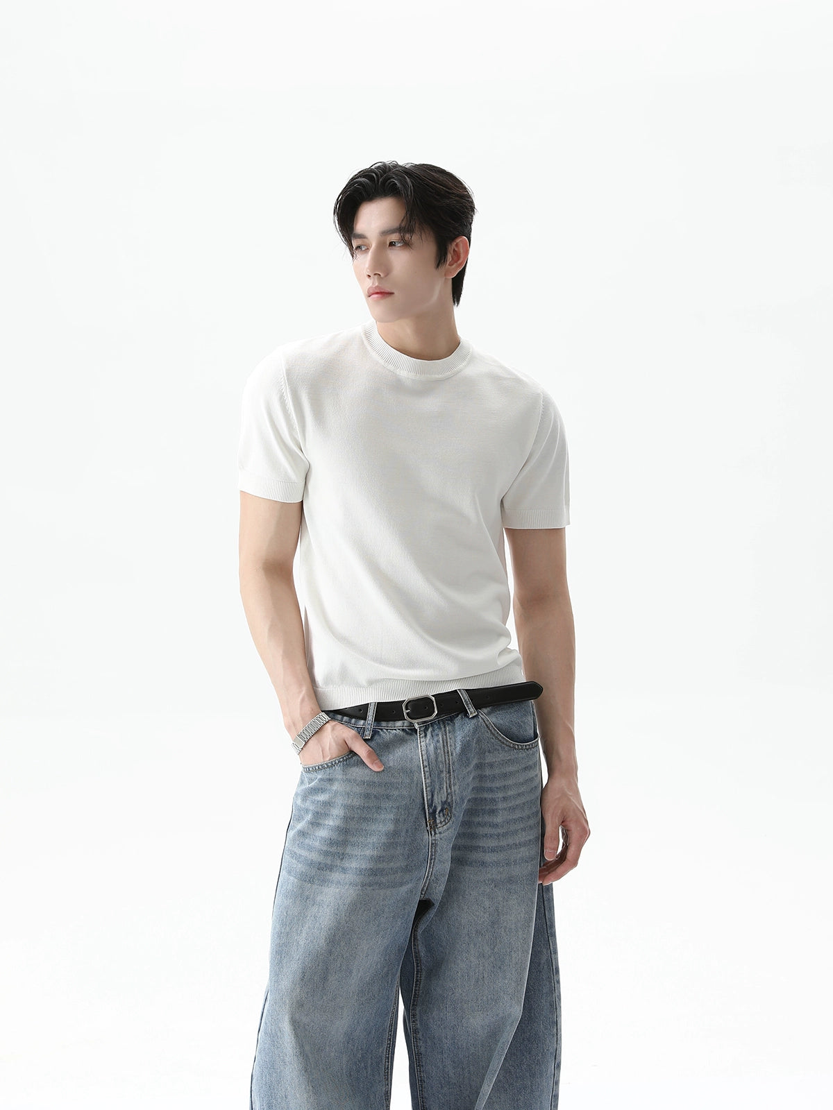 سويت شيرت قصير الأكمام من حرير الجليد القابل للتنفس
