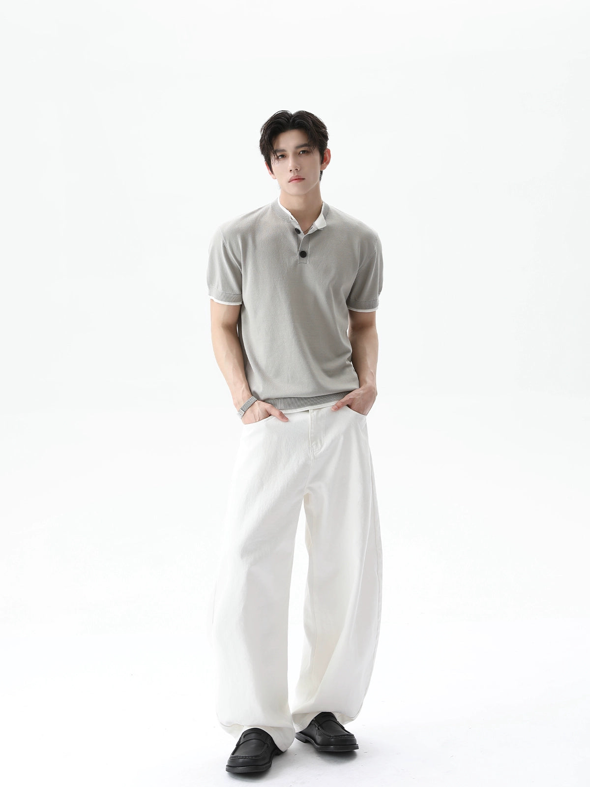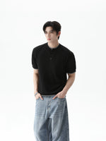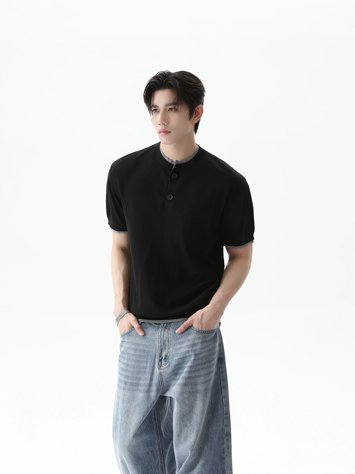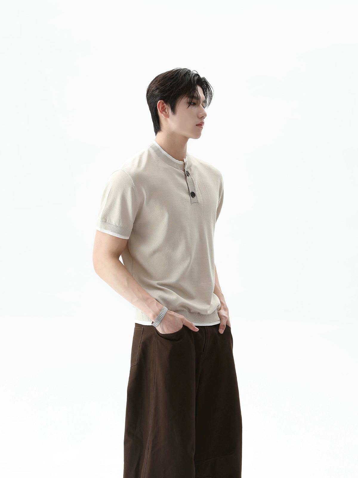 سويت شيرت قصير الأكمام بياقة هينلي محبوك