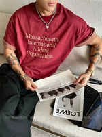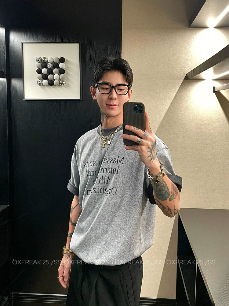 سويت شيرت قصير الأكمام فضفاض مطبوع برسالة ومغسول