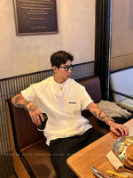 سويت شيرت قصير الأكمام من القطن الثقيل بتطريز باتش وورك