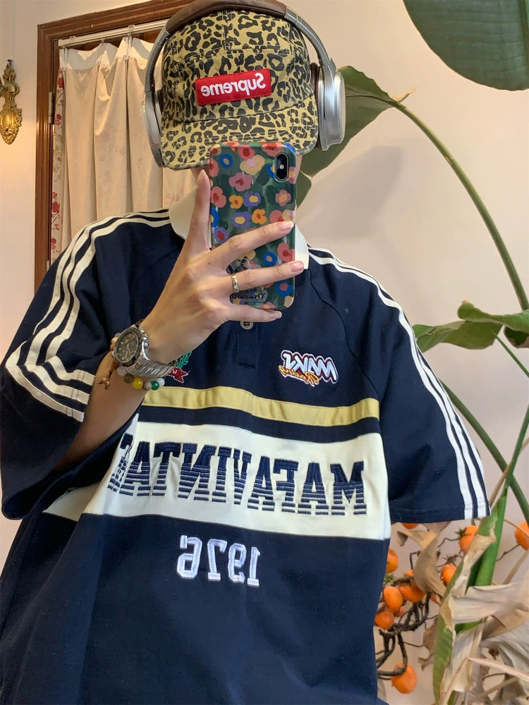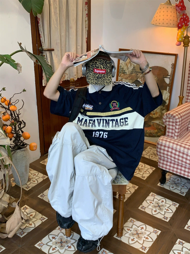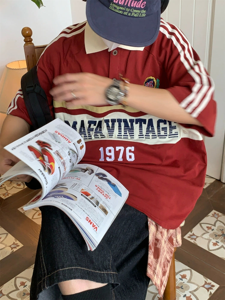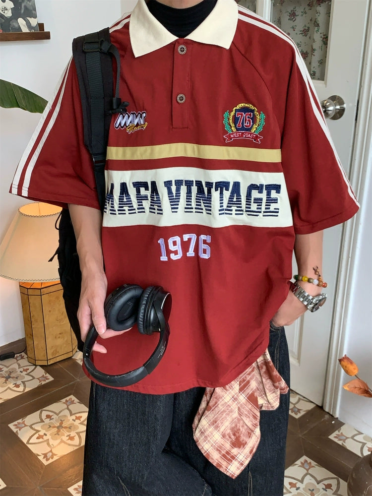 قميص بولو مطرز بتصميم ريترو بحجم واسع