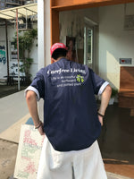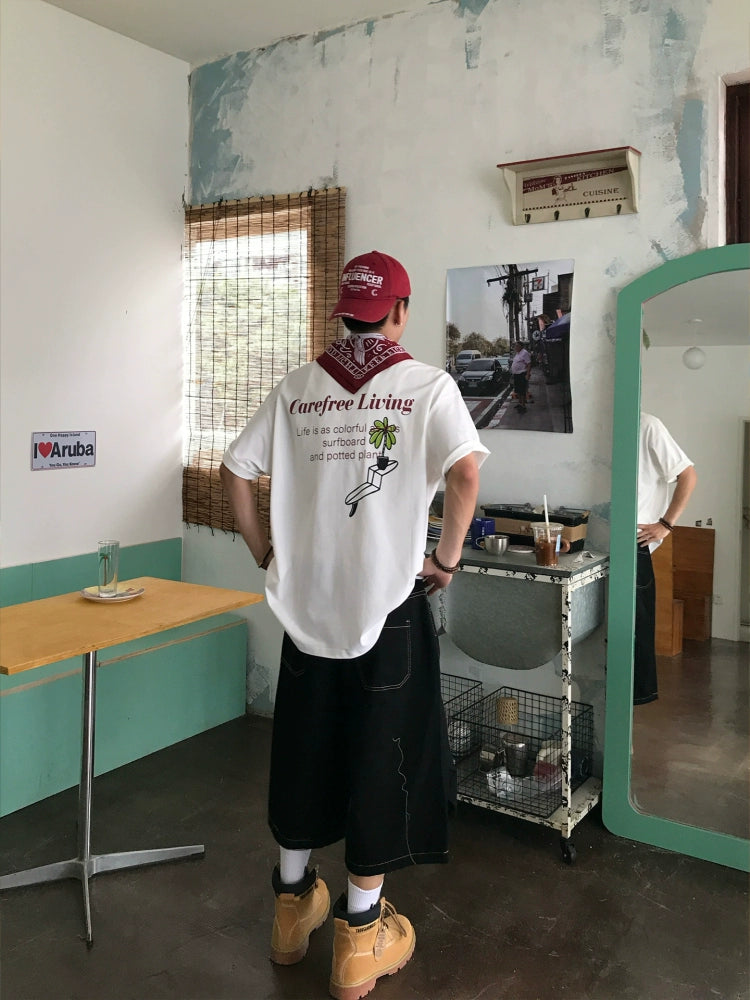 تي شيرت قصير الأكمام بتصميم ريترو فضفاض