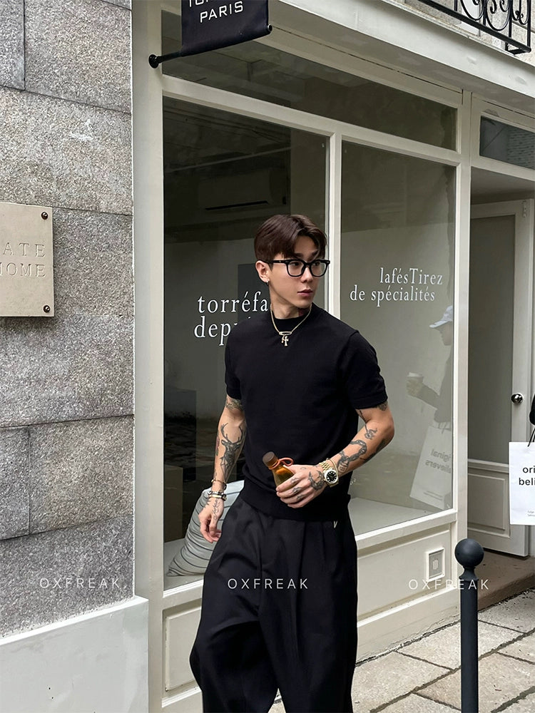 بلوزة قصيرة الأكمام ذات حمالات مستقيمة من قماش المخمل المرن