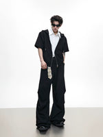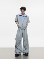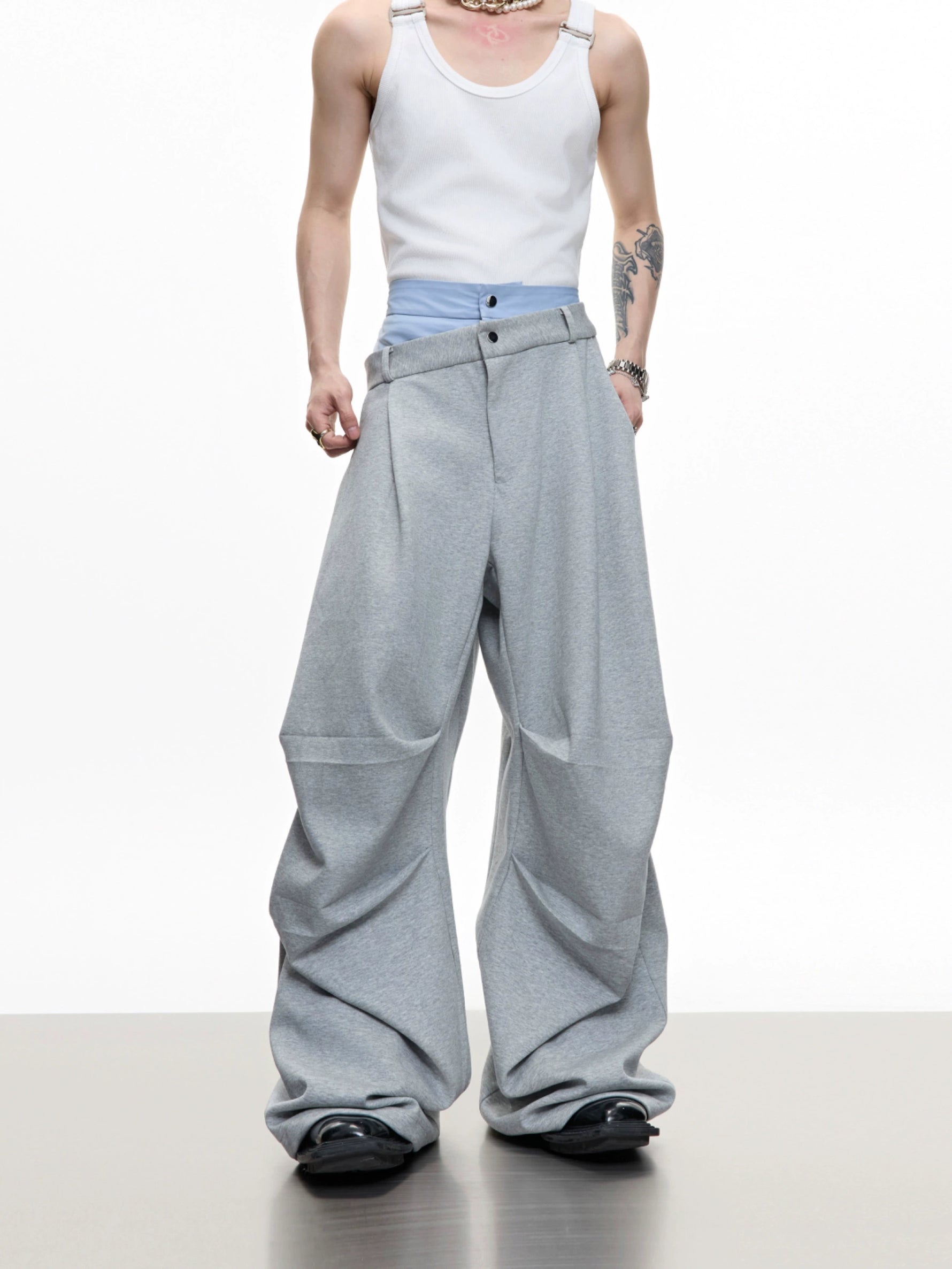 - السراويل المطبقة تخلق شعورًا مريحًا وأنيقًا, بينما يتميز حزام الخصر بتأثير قطعتين مزيفتين للعمق والأسلوب.
