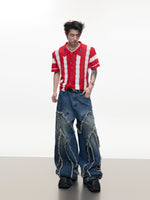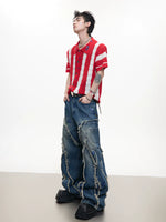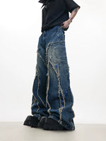 بنطلون واسع الساق بحواف خام مزين بالخرز