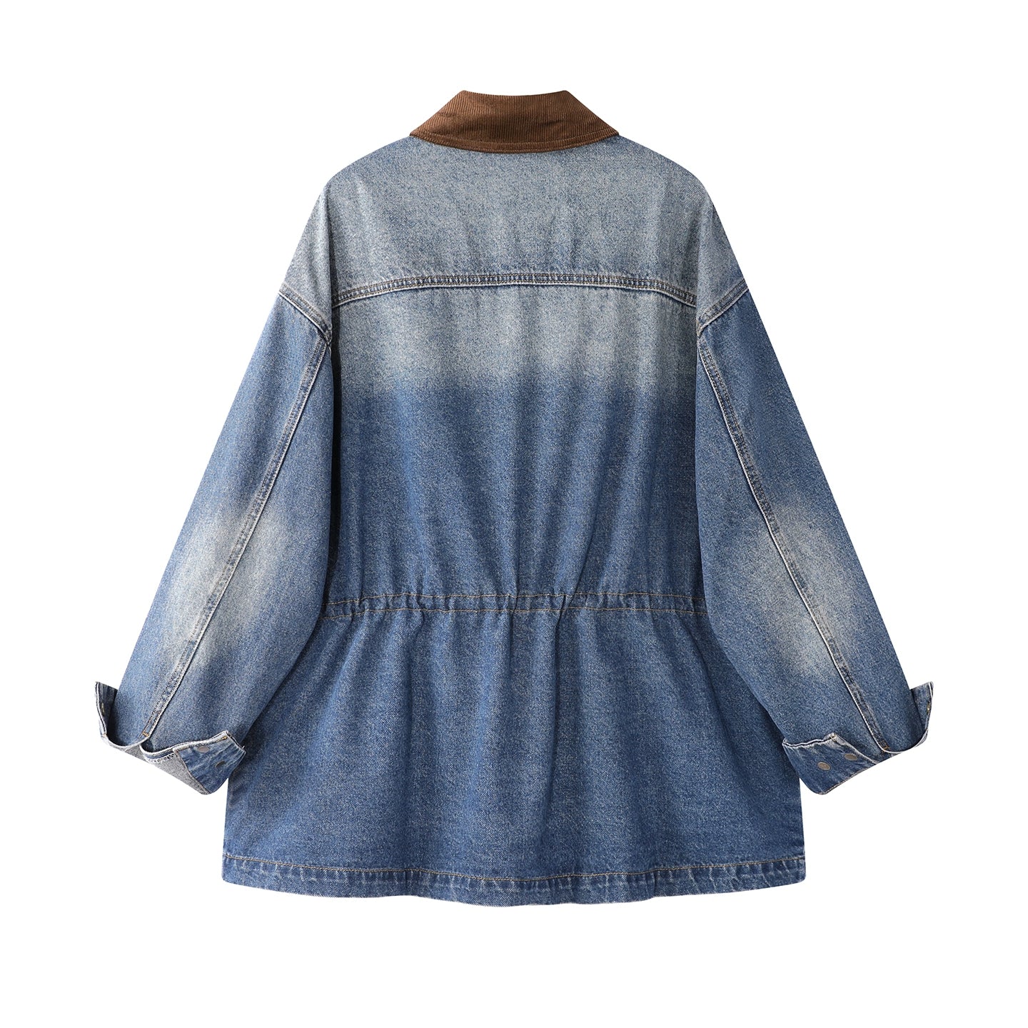 سترة جينز فضفاضة بياقة من قماش الكوردروي