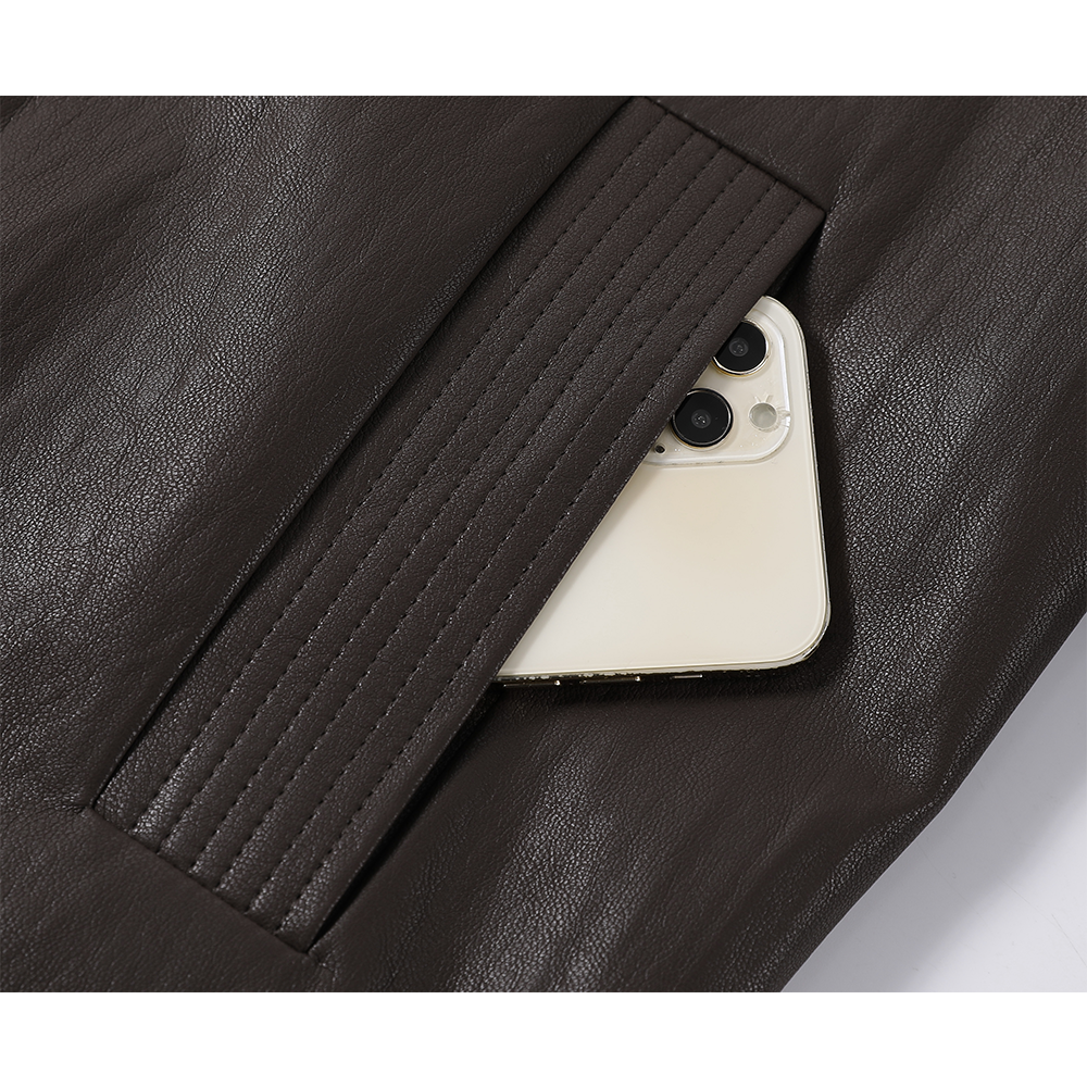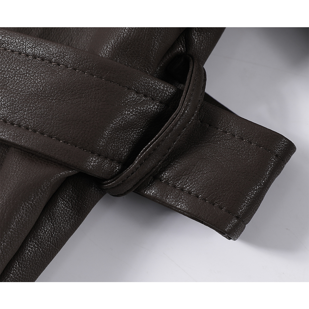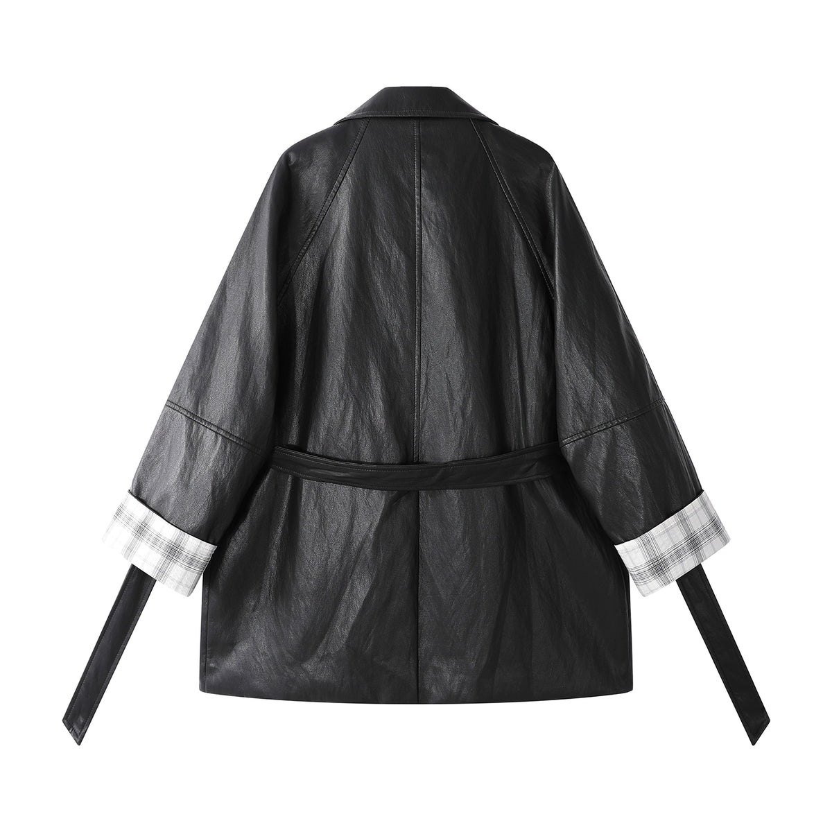 جاكيت بليد برباط من الجلد الصناعي مع ياقة