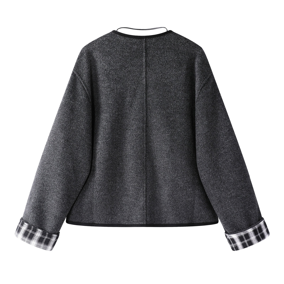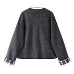 معطف قصير من الصوف بكم مخطط, مزدوج الجوانب