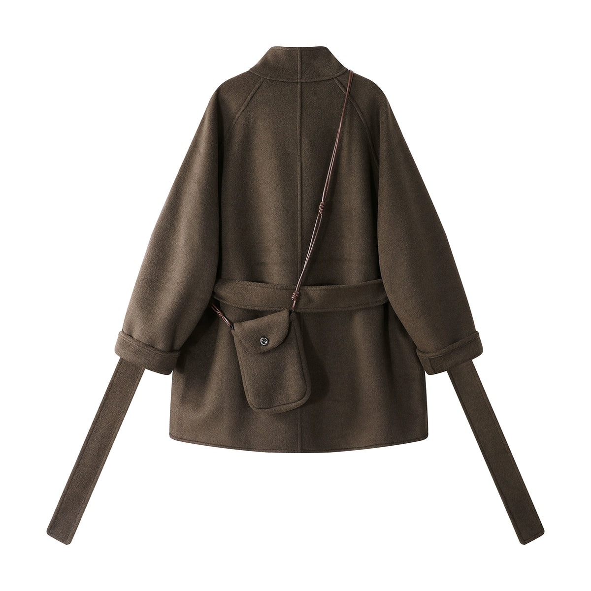 معطف صوف مزدوج الجوانب بياقة واقفة