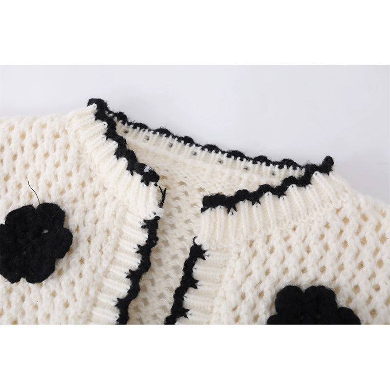كارديجان محبوك من الصوف الثقيل مزود بأربطة من الدانتيل