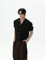 كارديجان قصير الأكمام مزود بأزرار على الياقة