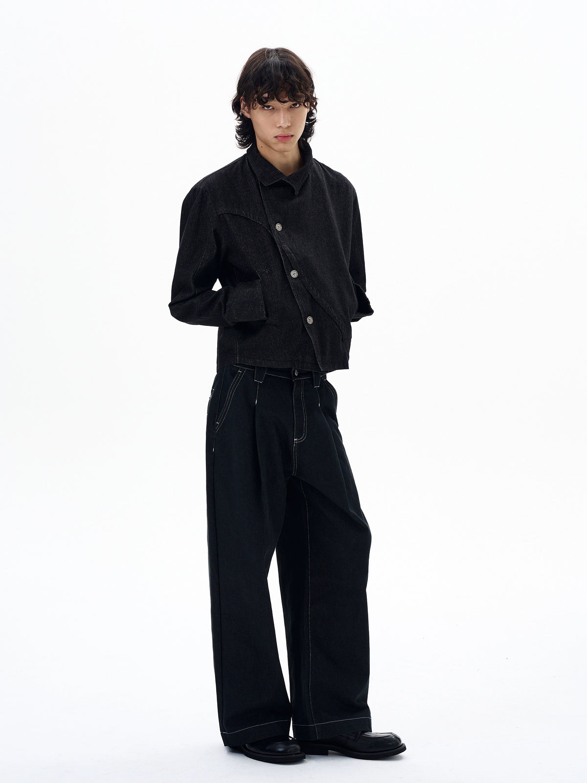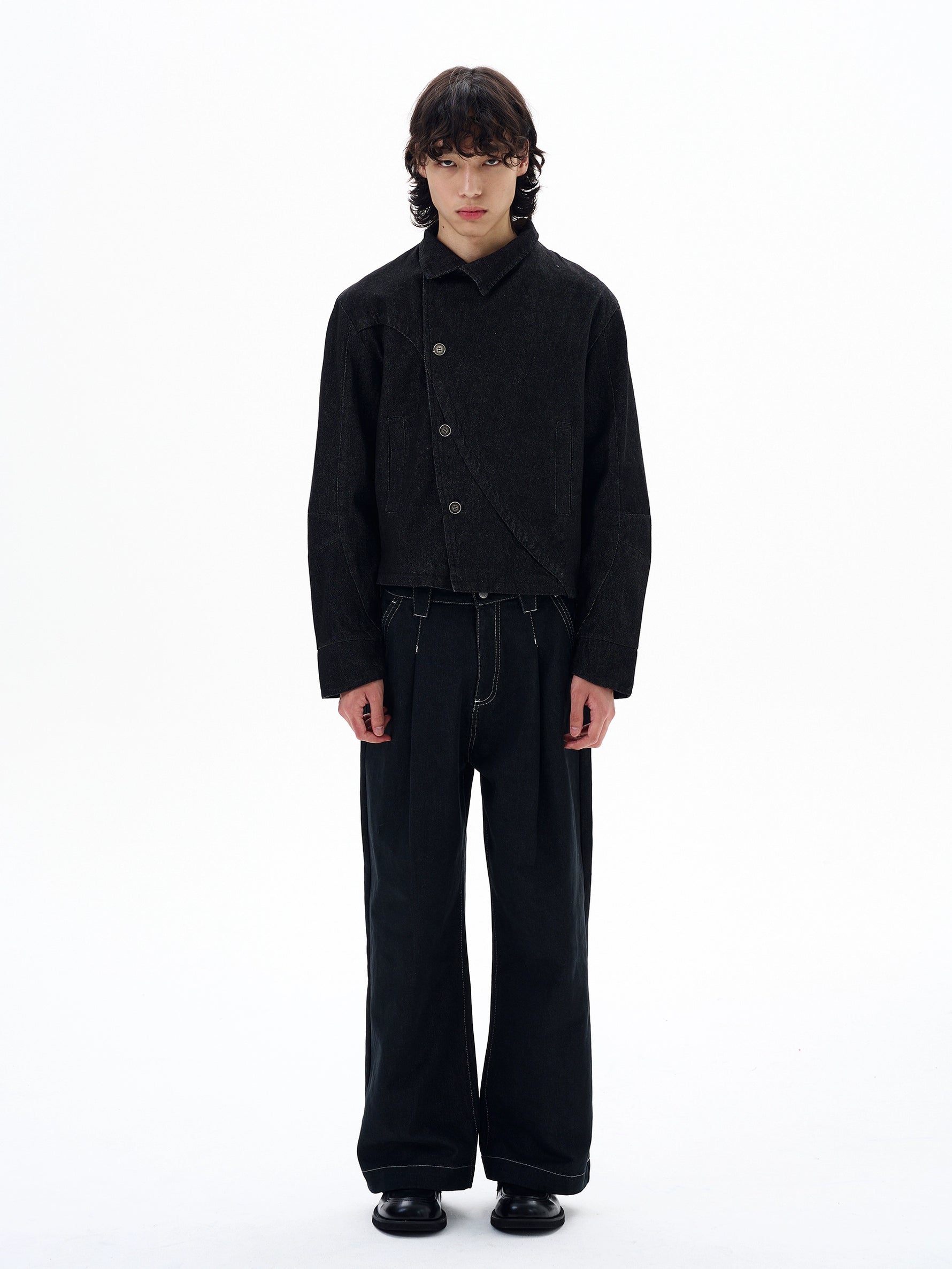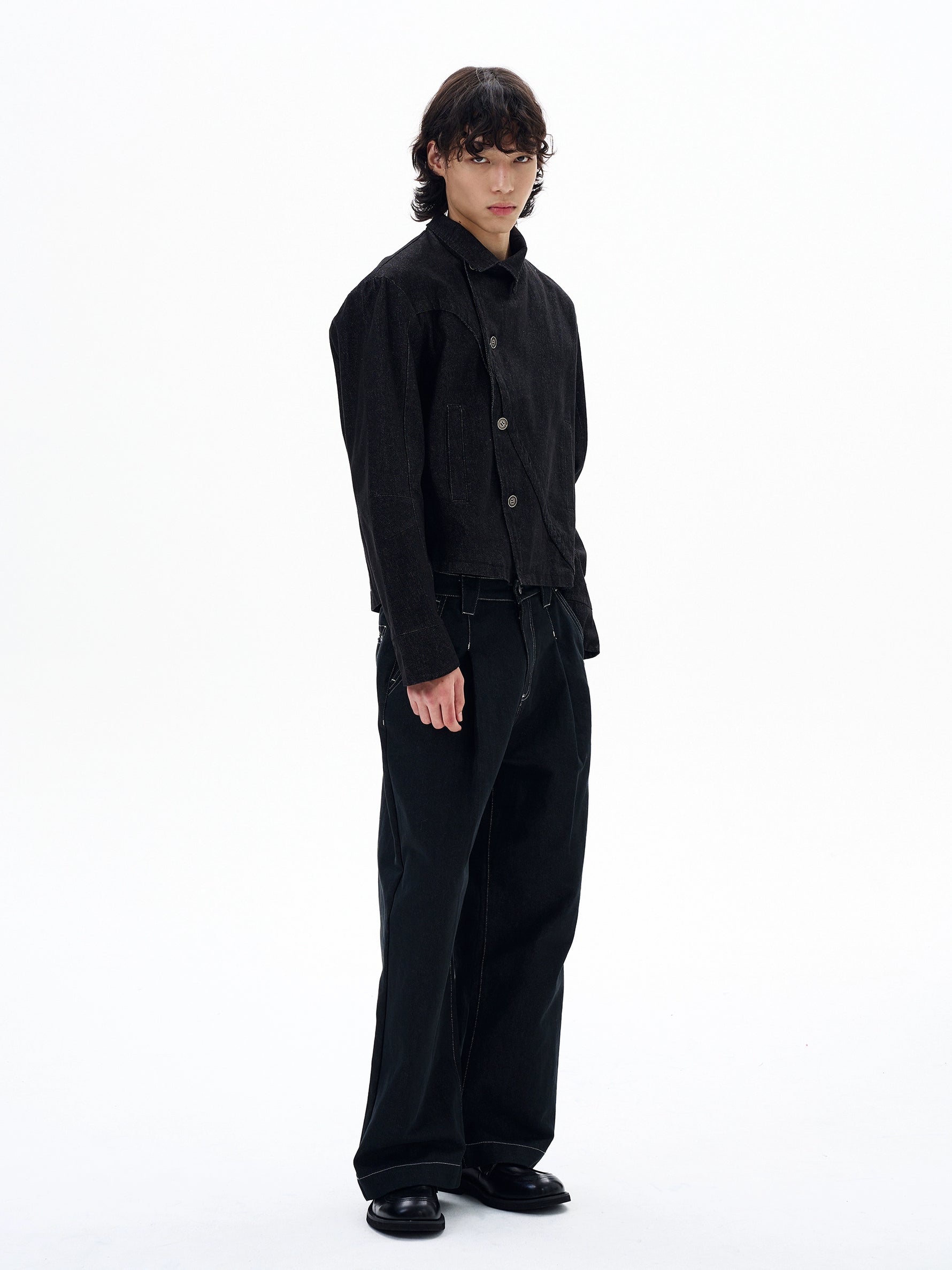 جاكيت جينز غير متساوي الأطراف بقصة مستقيمة عتيقة