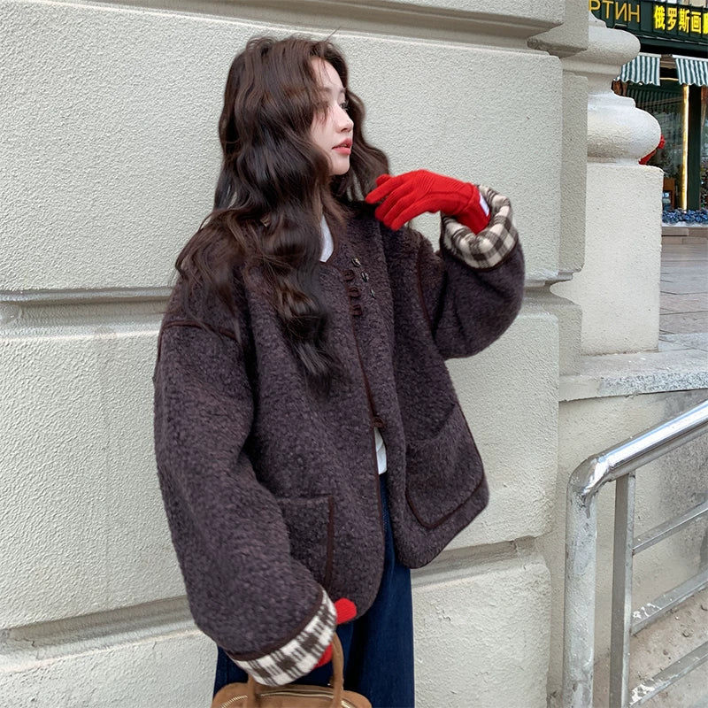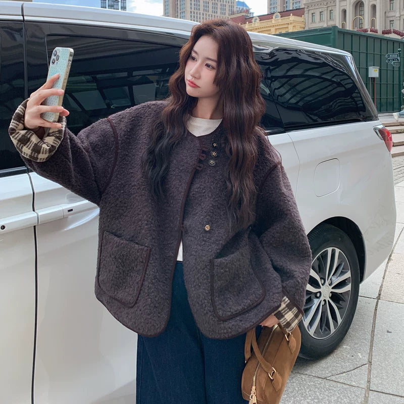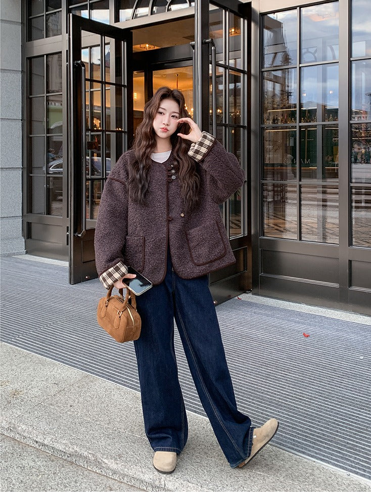 معطف قصير من الفرو الصناعي القابل للعكس