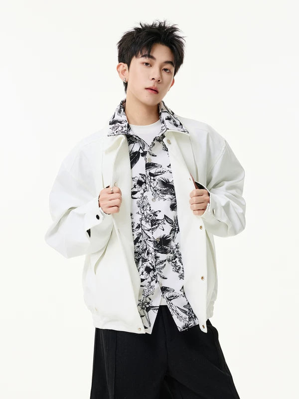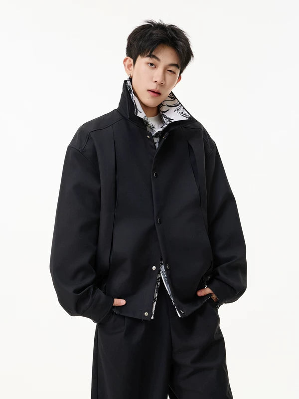 جاكيت باتش وورك بسحاب مخطط بطباعة الحبر