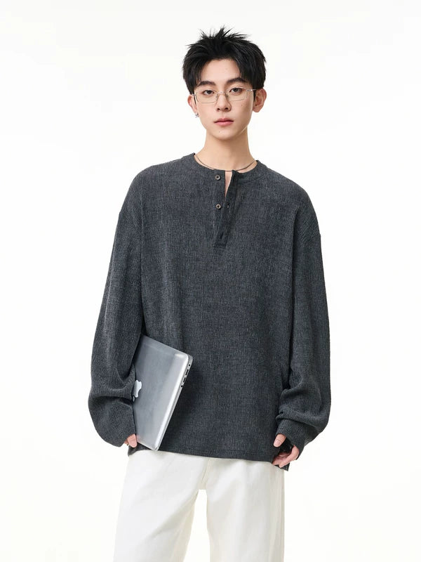 تي شيرت هينلي طويل الأكمام ذو القوام