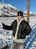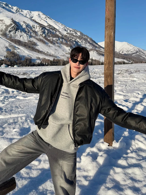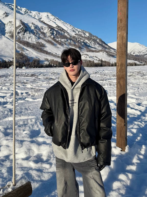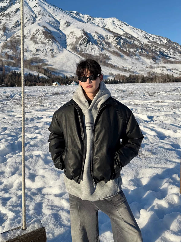 جاكيت بسحاب من جلد PU بتصميم بسيط