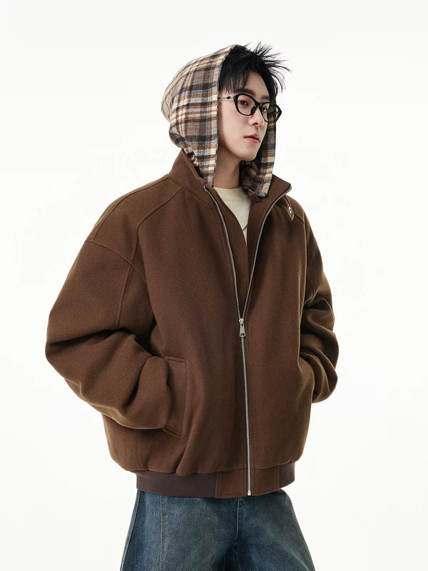 جاكيت قطن مبطن ببطانة مربعة مع غطاء رأس