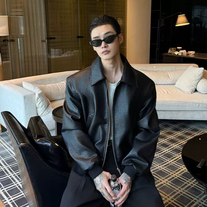 جاكيت دراجة نارية من جلد PU مع ياقة