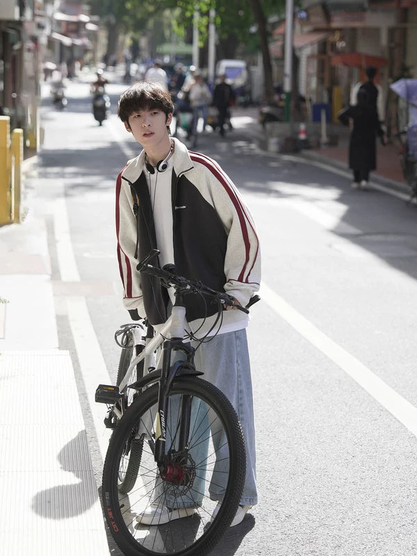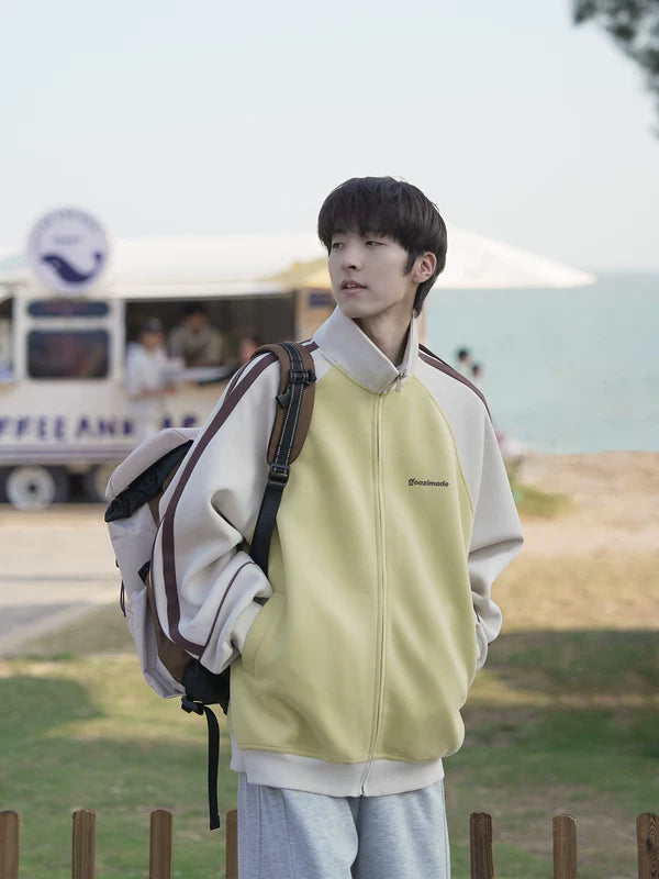 جاكيت بسحاب وياقة stand بأكمام راغلان
