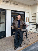 جاكيت بومبر بقلنسوة من الفرو الصناعي بتصميم ريترو