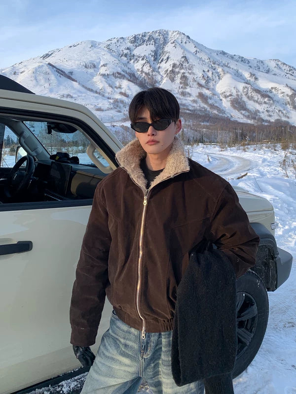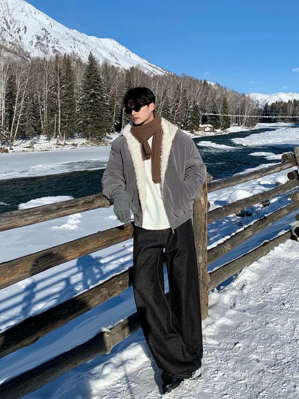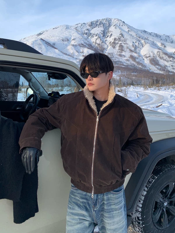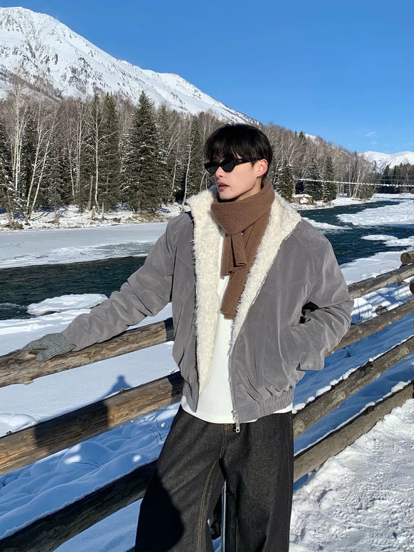 جاكيت شتوي مزود ببطانة من الفليس وياقة قائمة