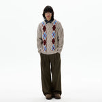 سويت شيرت بياقة دائرية محبوك بنمط الماس