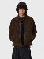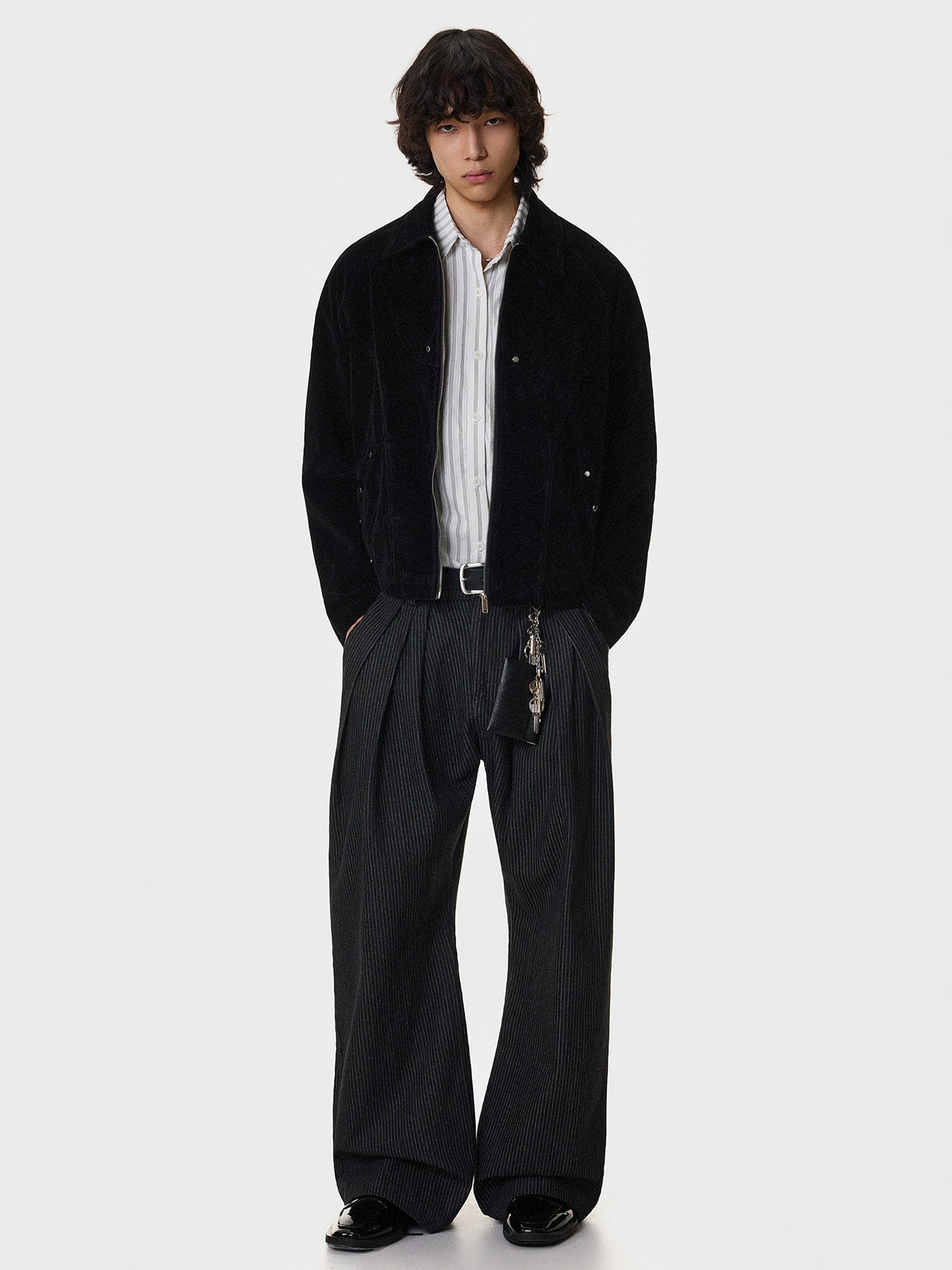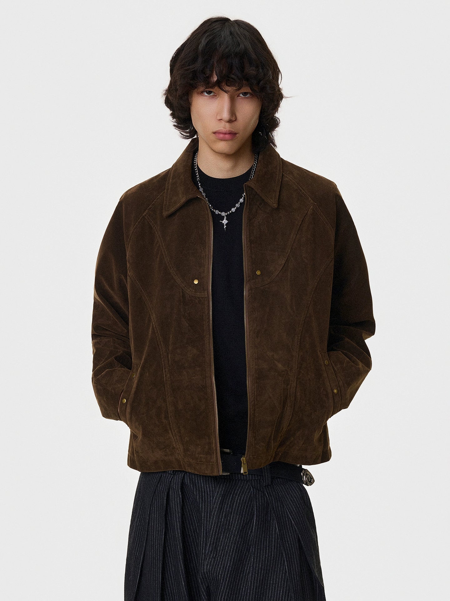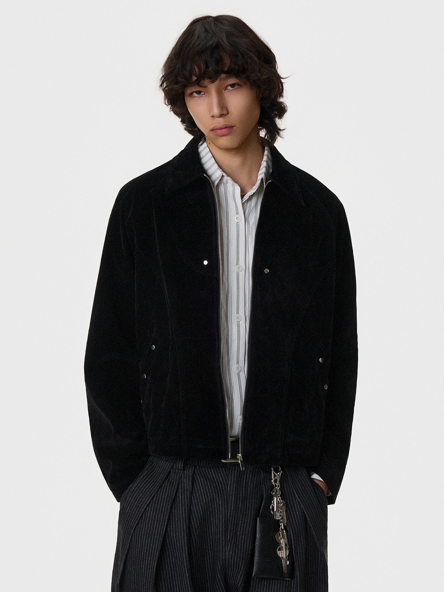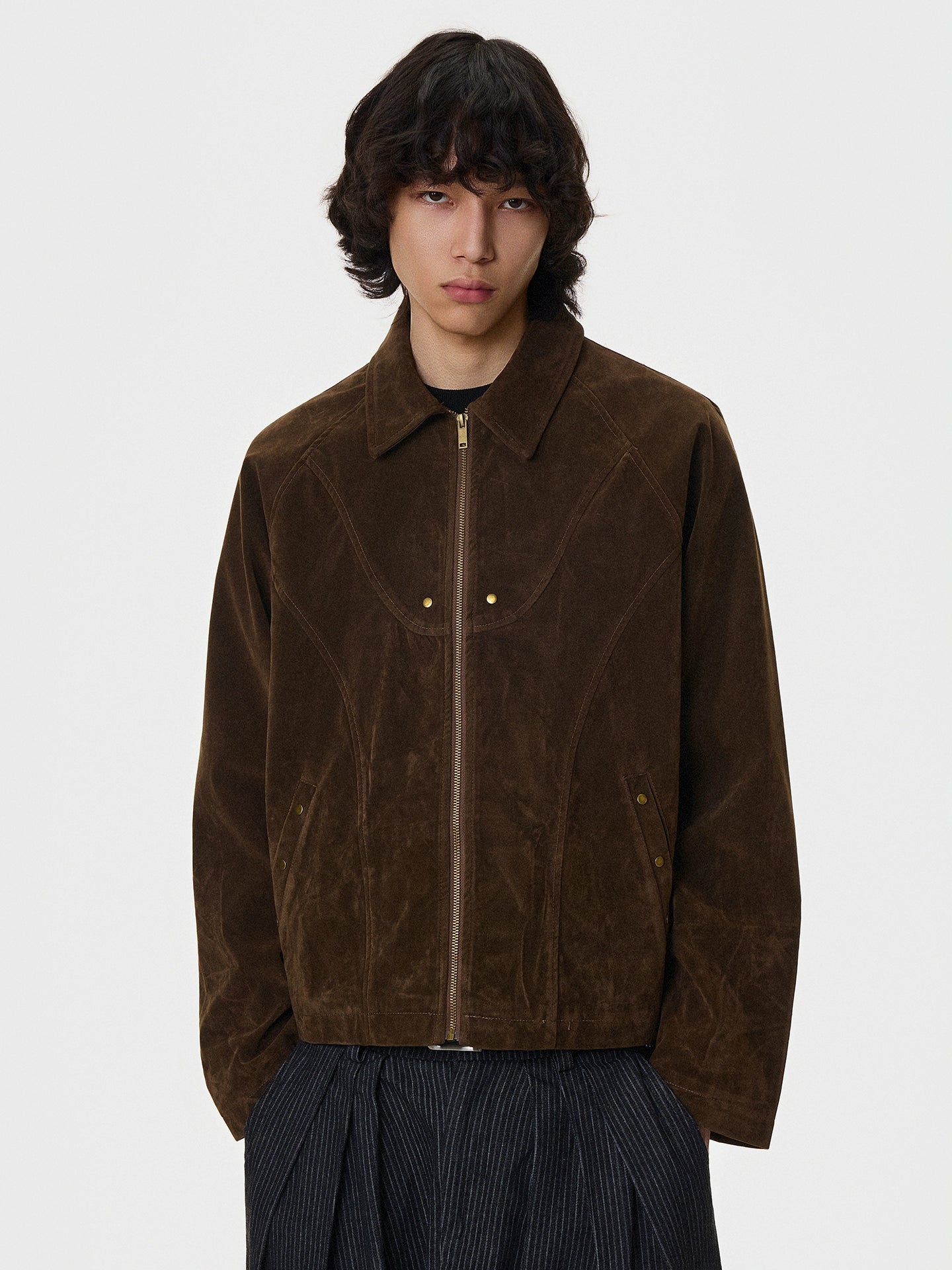 جاكيت سحاب مزين من جلد السويد المقصوص