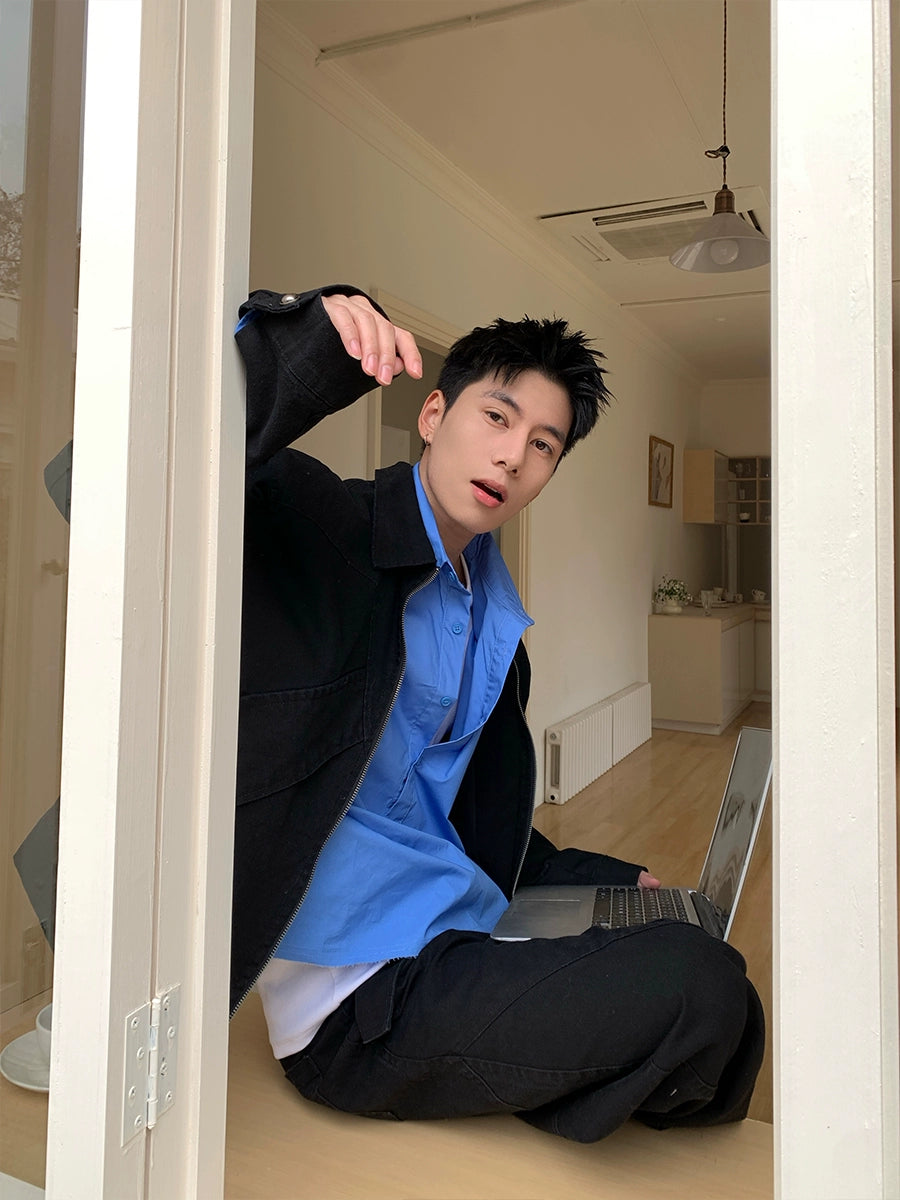 طقم سترة وبنطلون من الجينز المفكك