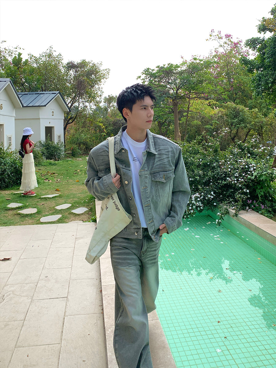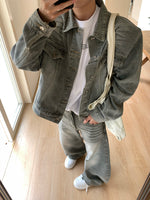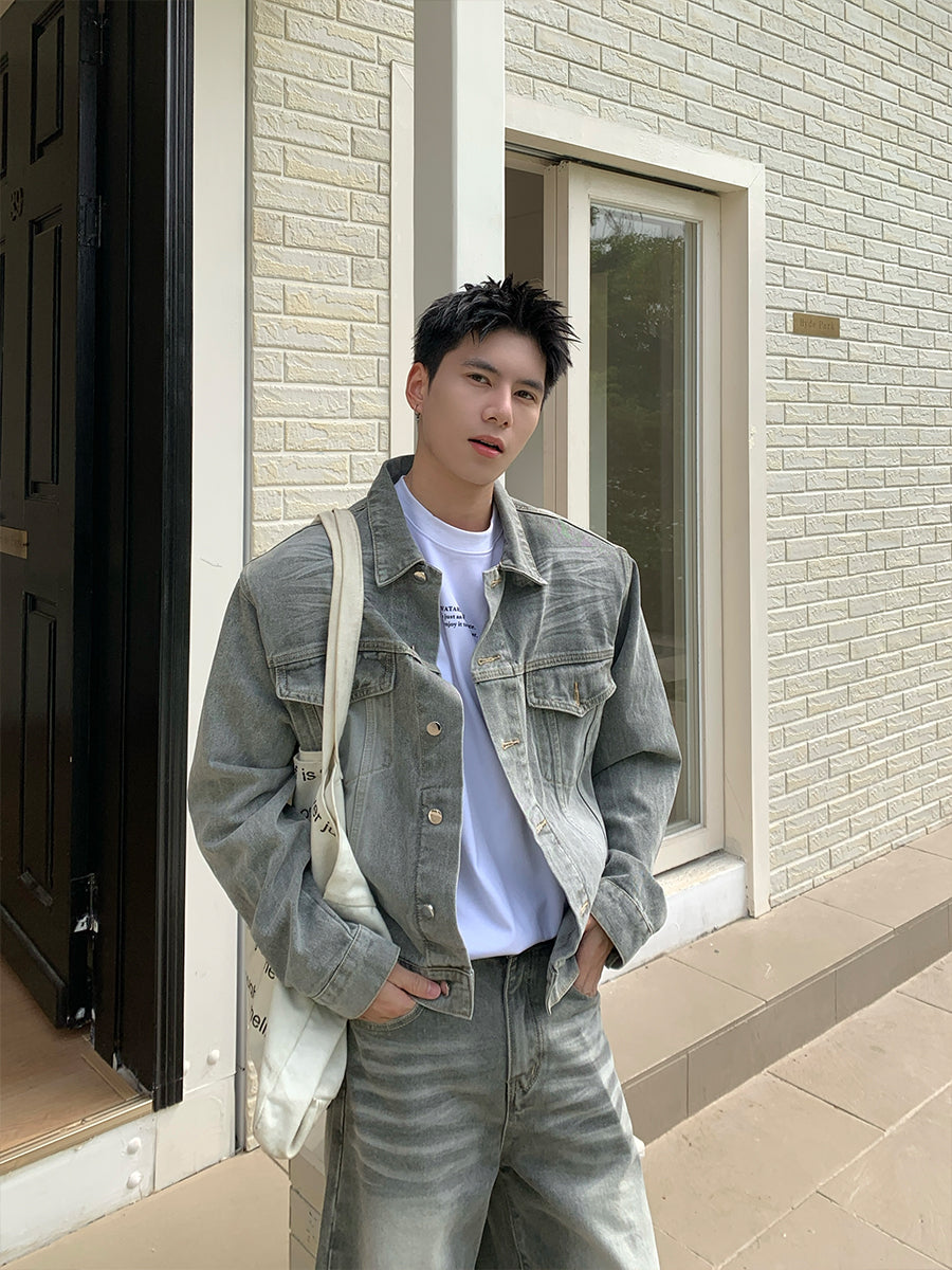 Denim Jacket with Shoulder Pads