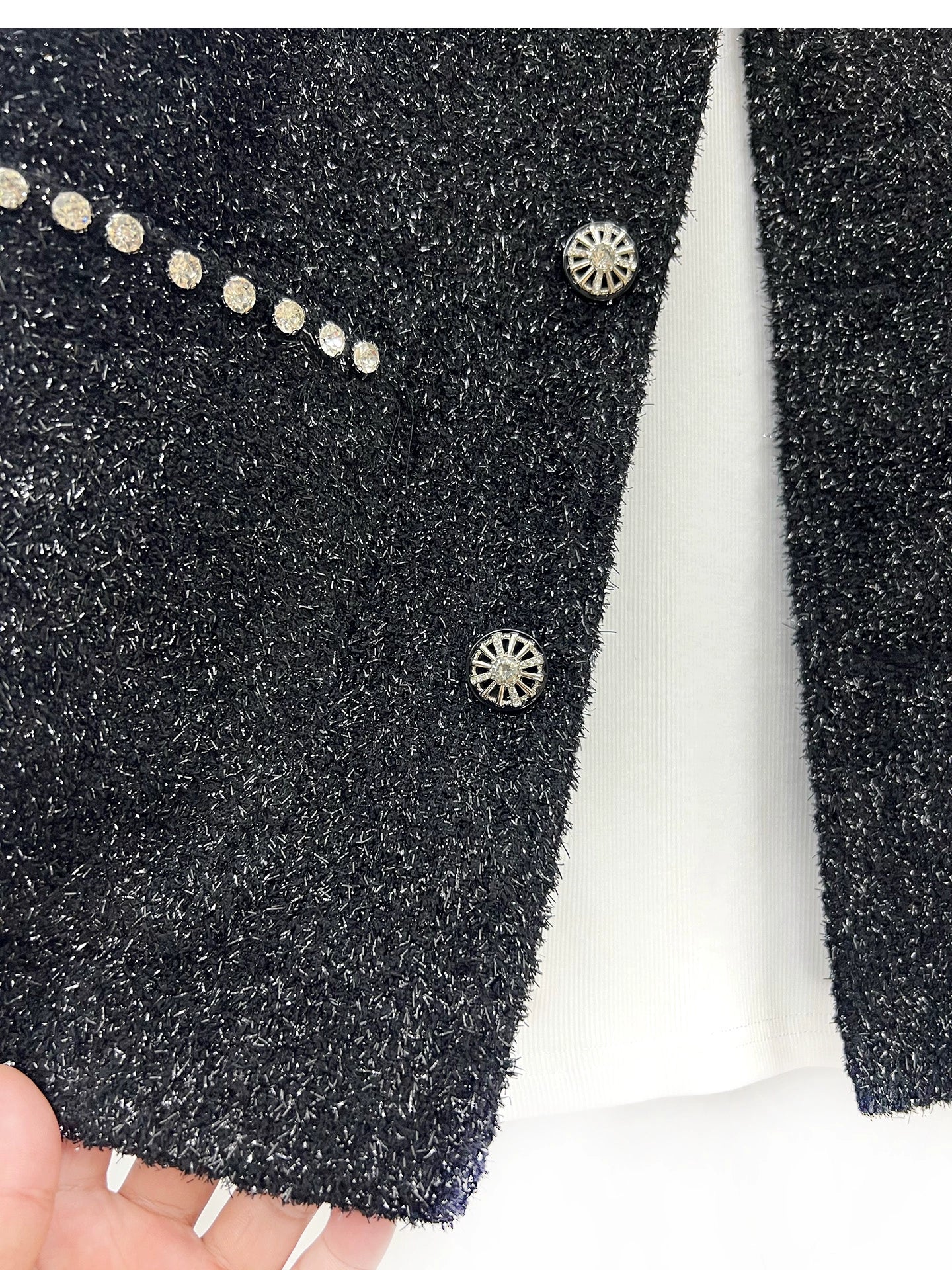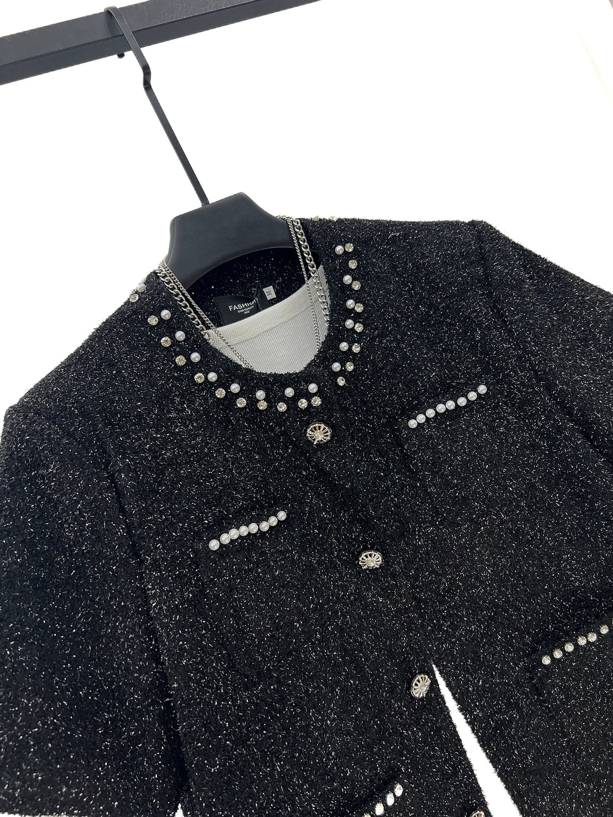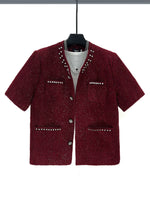 سترة كاجوال قصيرة الأكمام مرصعة بالألماس
