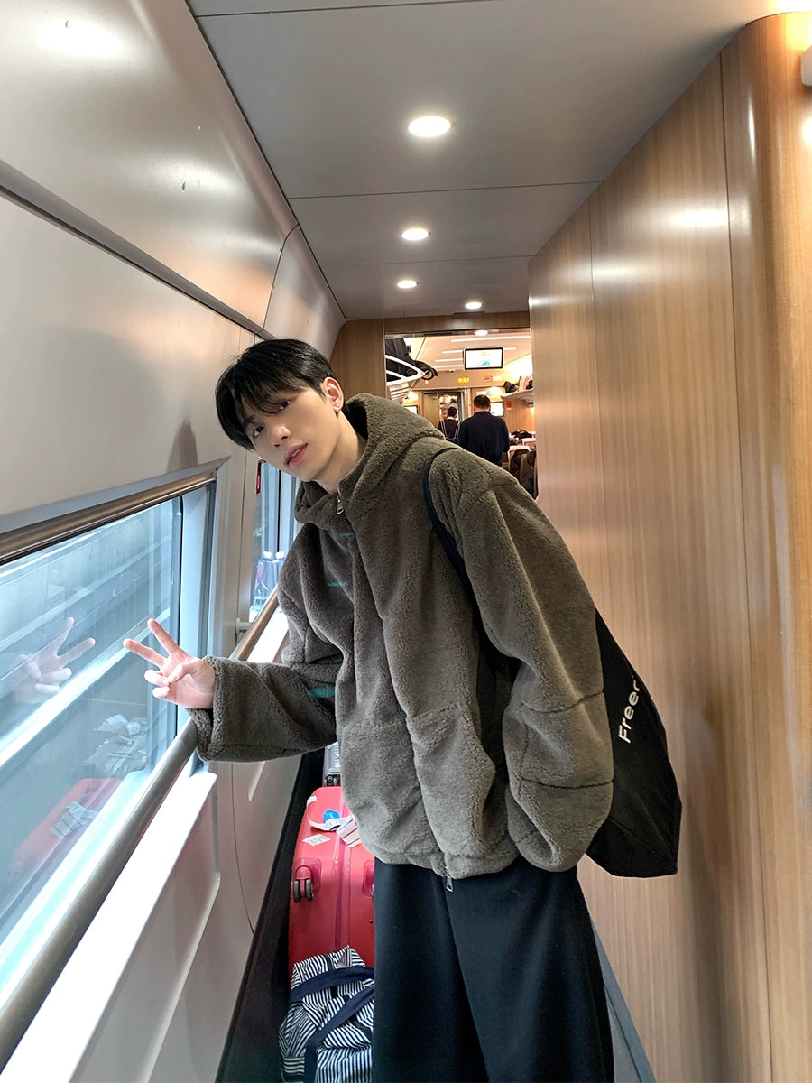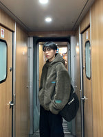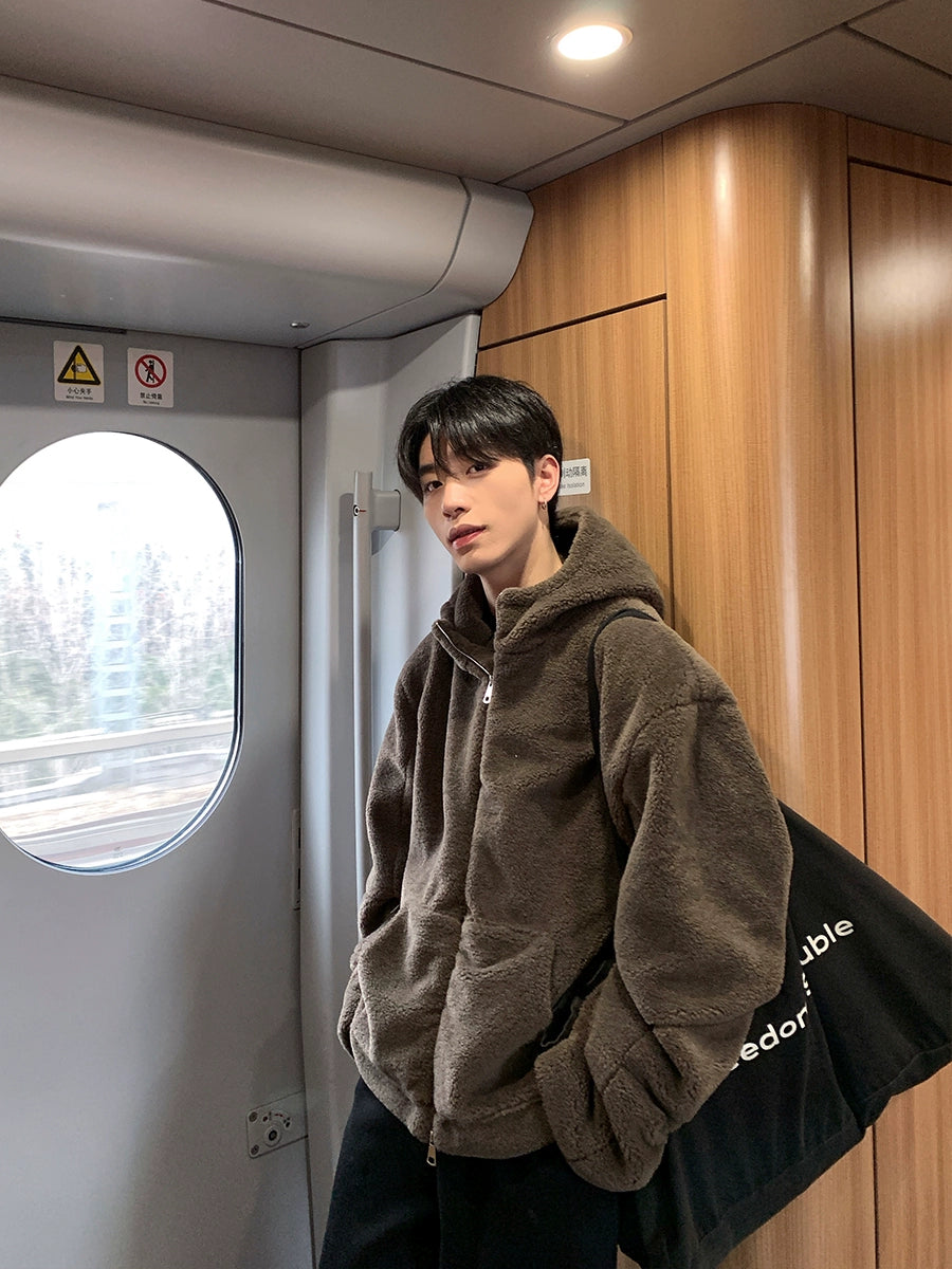 جاكيت سحاب بغطاء رأس من الصوف الرجعي