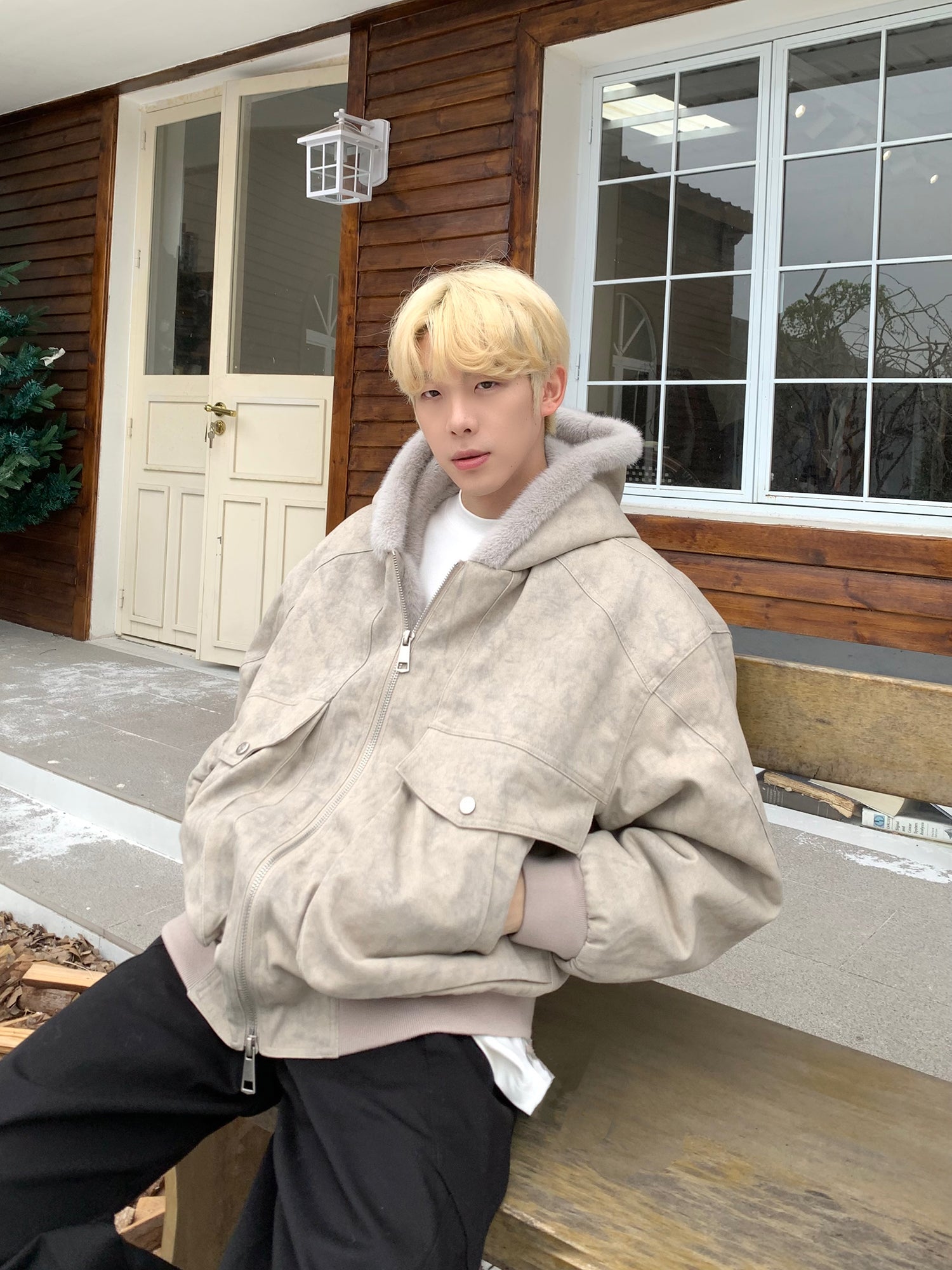 جاكيت قطن معزول بغطاء رأس بتصميم فضفاض