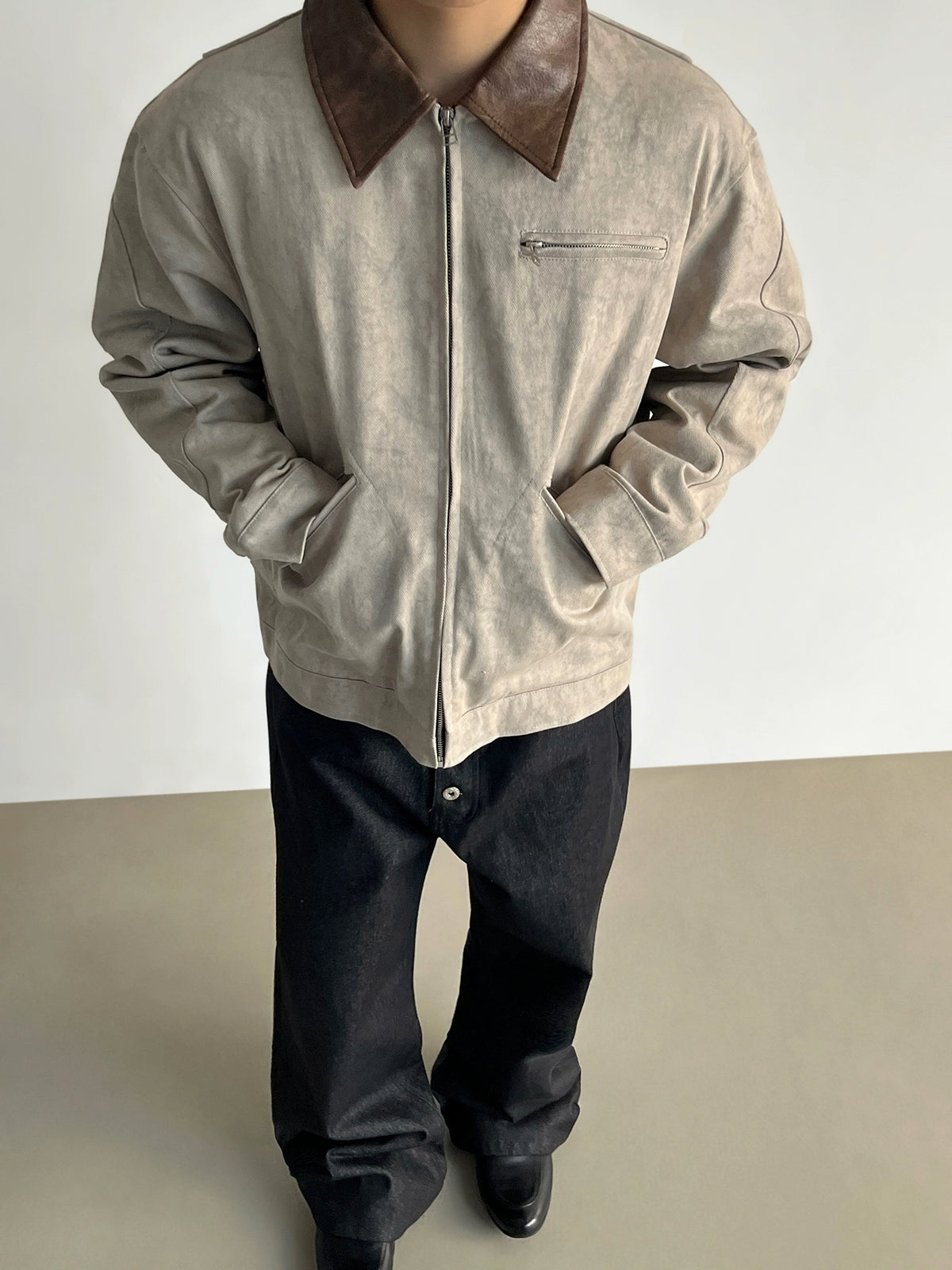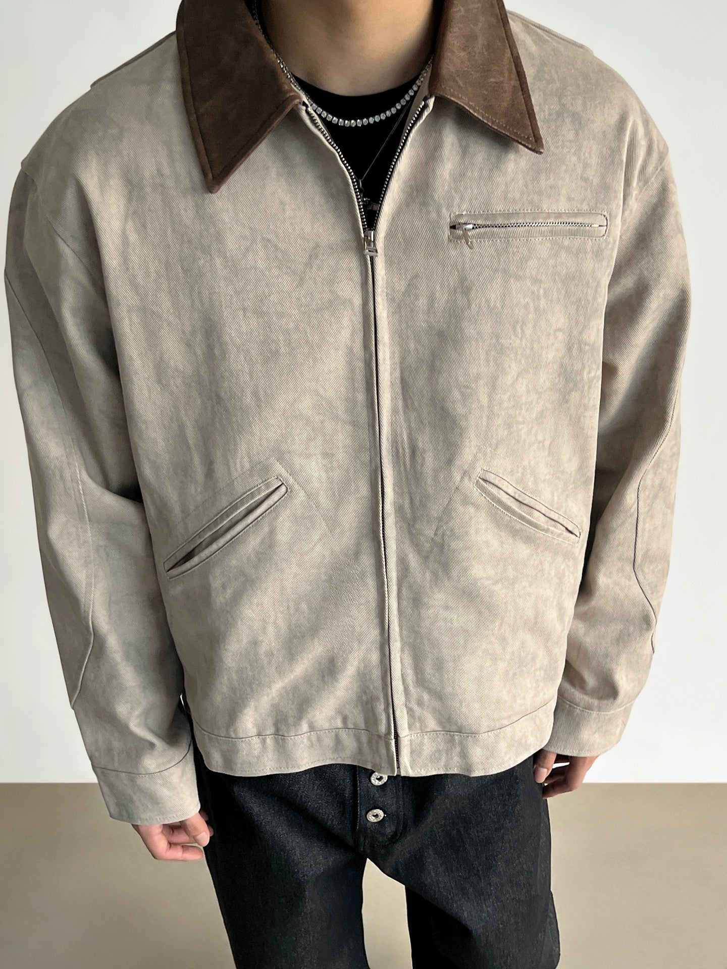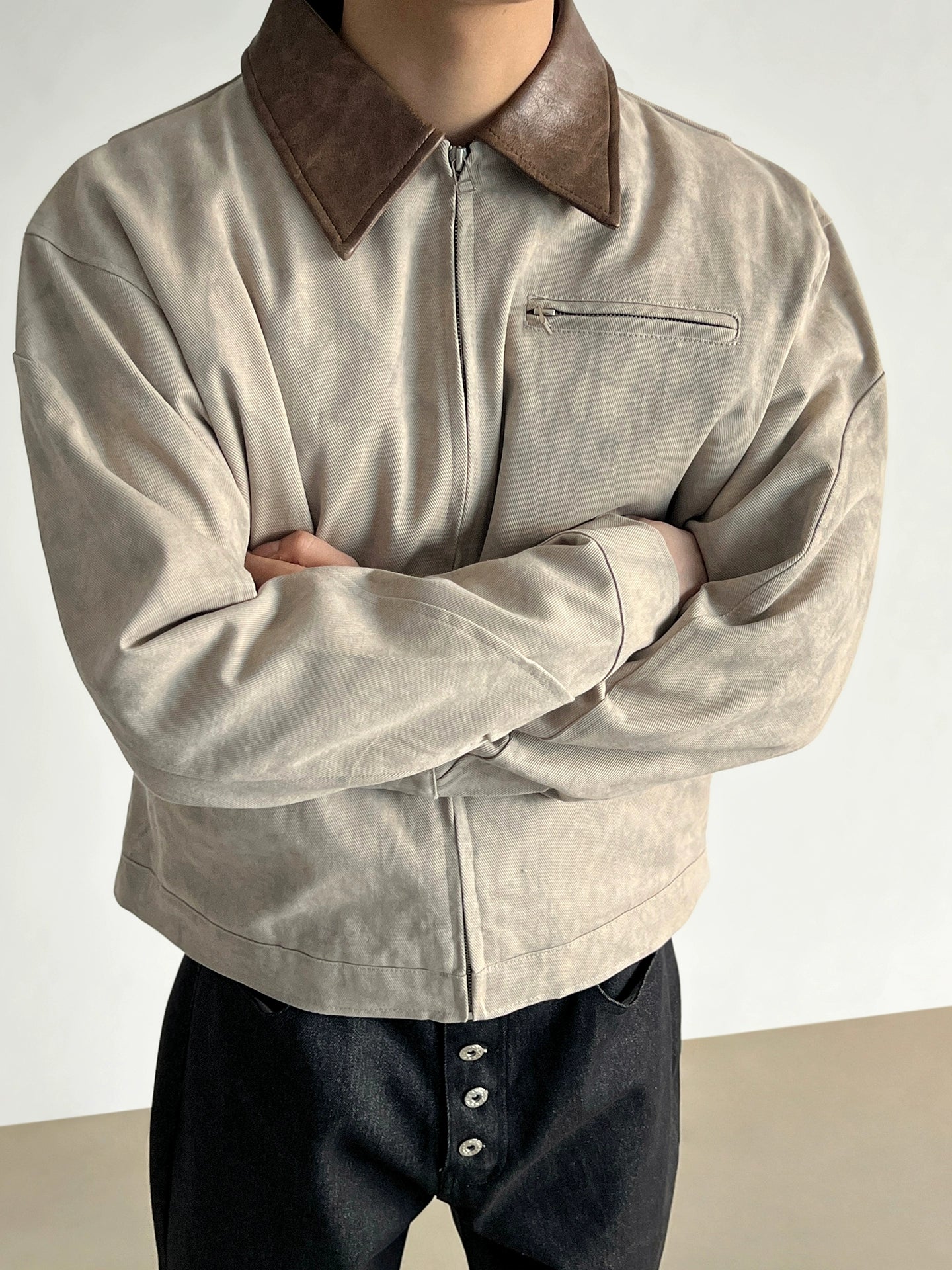 جاكيت عمل بسحاب وياقة بنمط الرخام