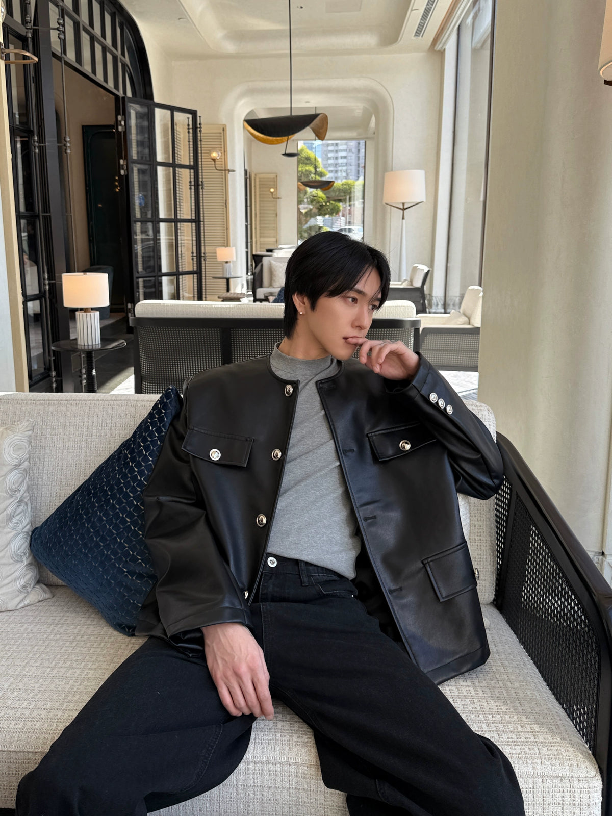 جاكيت جلد PU بأسلوب الدراجة النارية