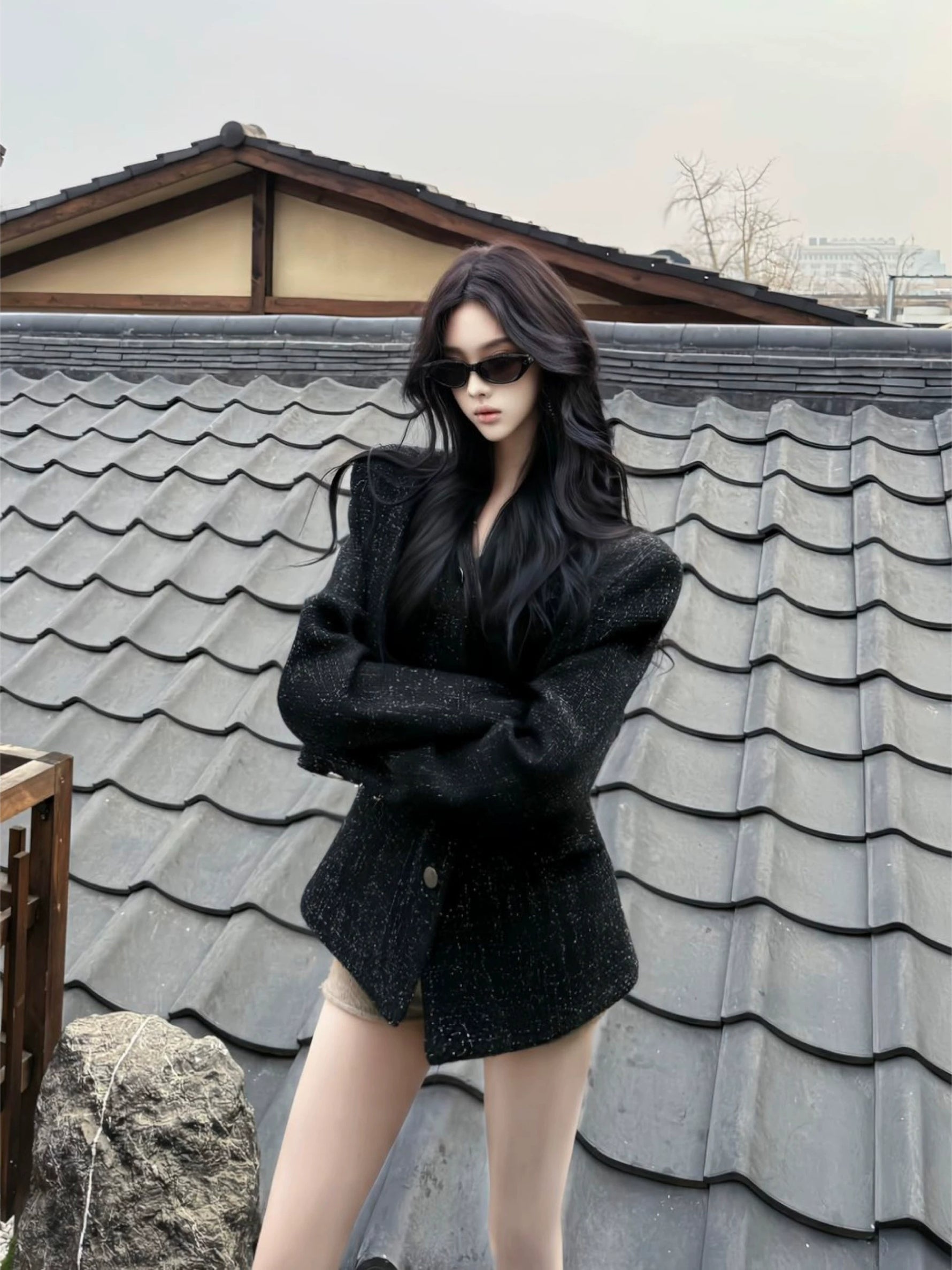 جاكيت قصير مزود بوسادات كتف محبوكة