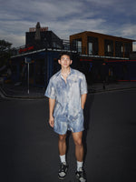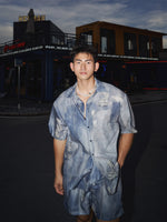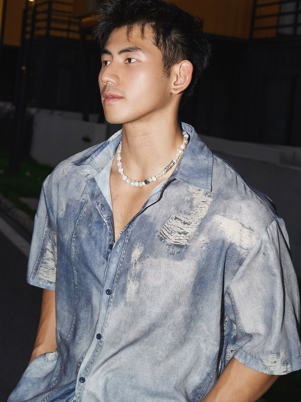 قميص مزيف من الدنيم بأكمام قصيرة مع أزرار