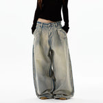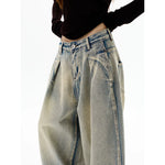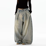 بنطلون جينز فضفاض مع طيات وساق واسع