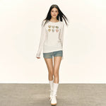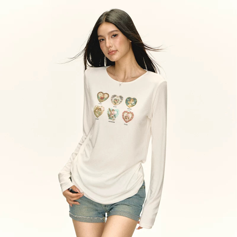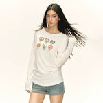 قميص بأكمام طويلة وياقة دائرية بطباعة ريترو