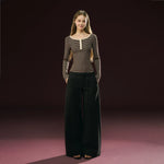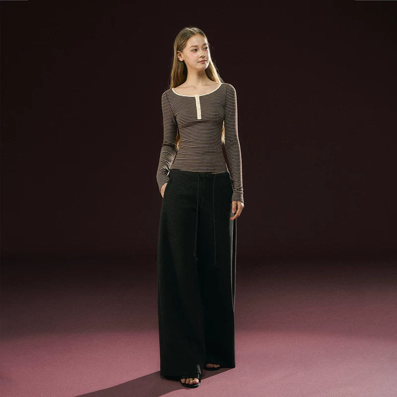 بلوزة هينلي ذات أكمام طويلة مخططة بياقة عالية