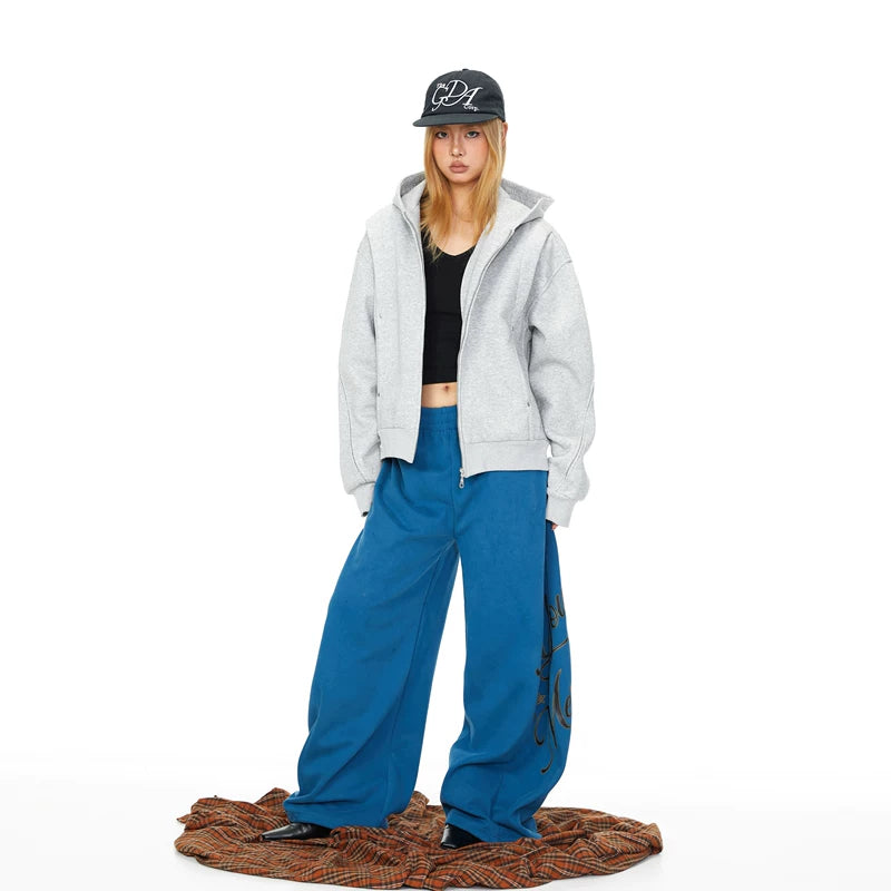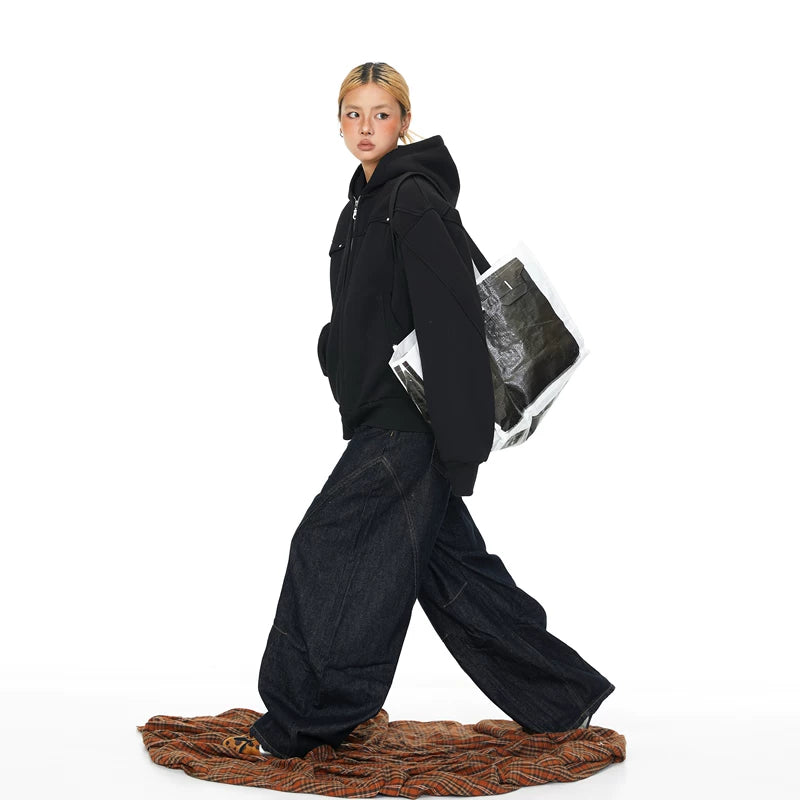 Studded Patchwork Hooded Zip Cardigan