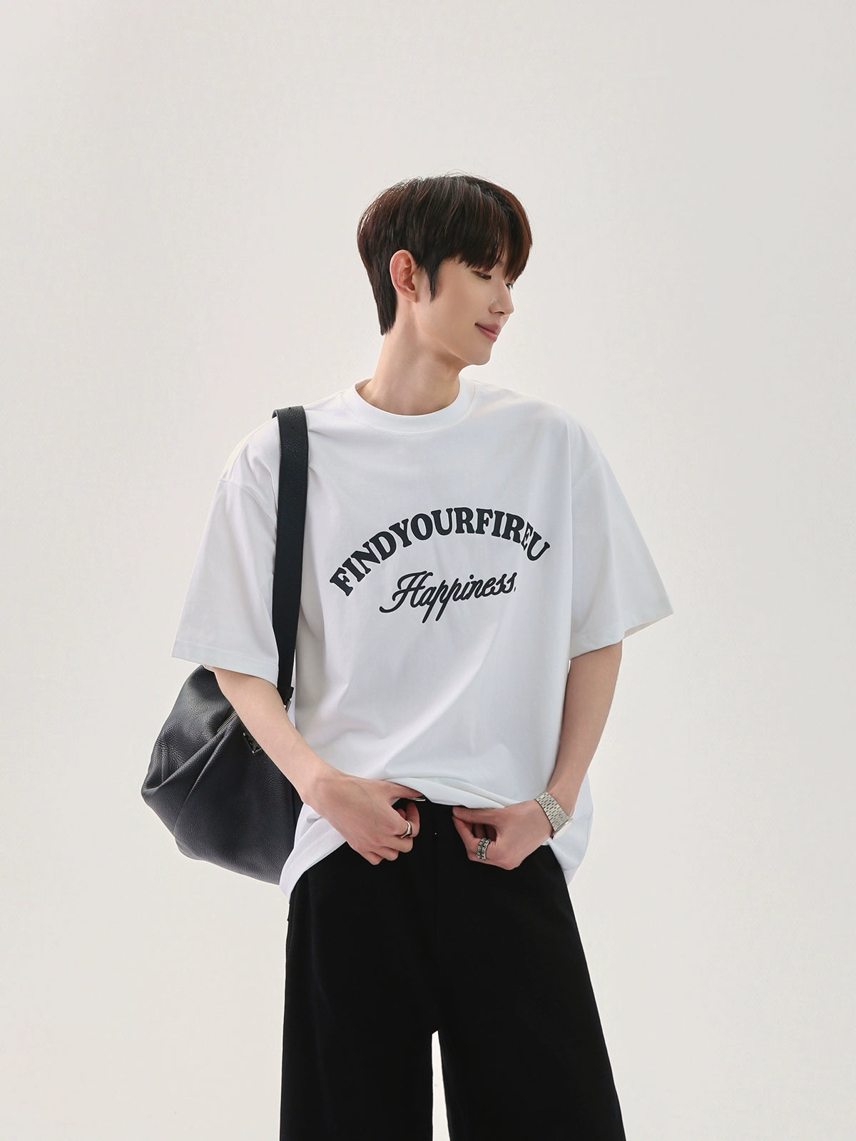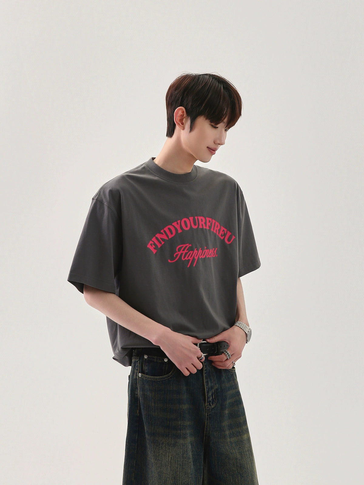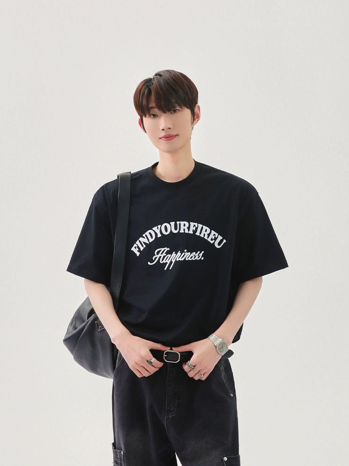 تي شيرت برسالة بقصة فضفاضة وعادية