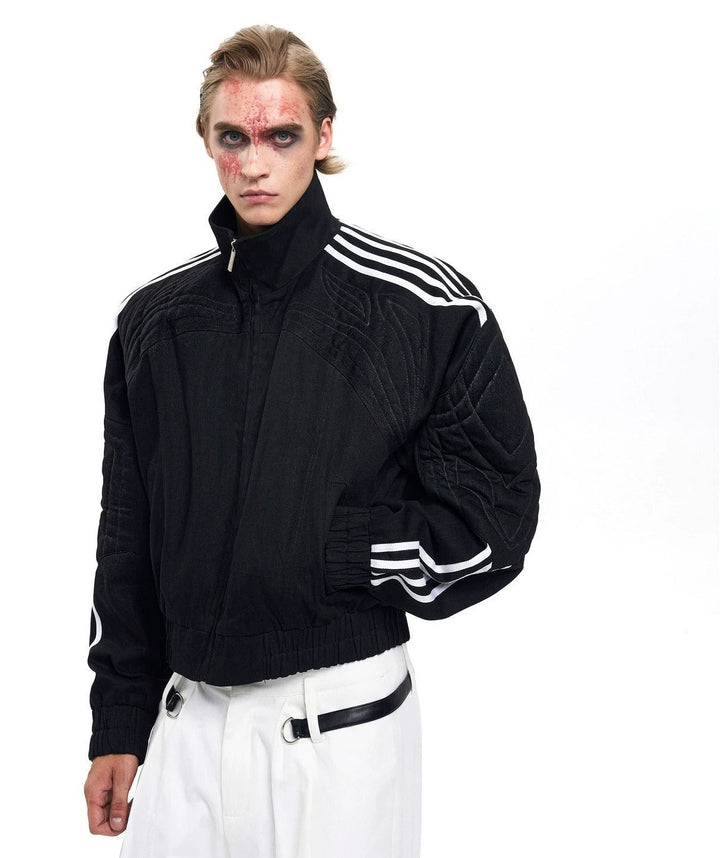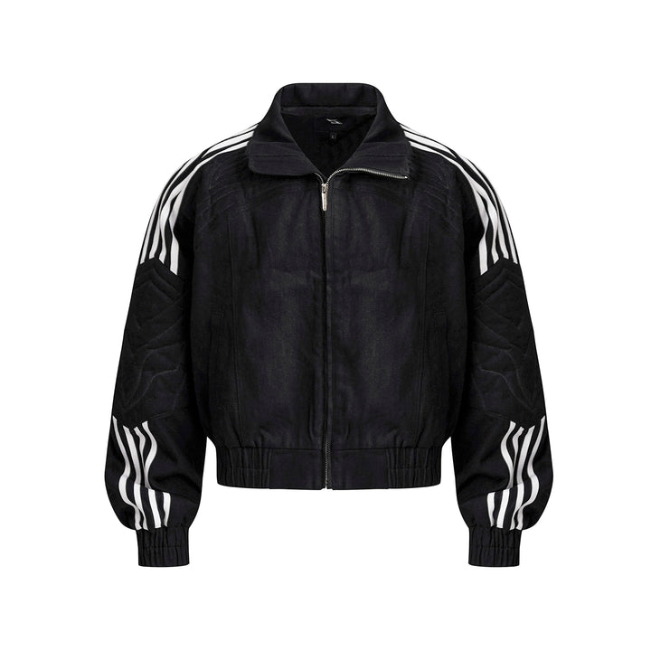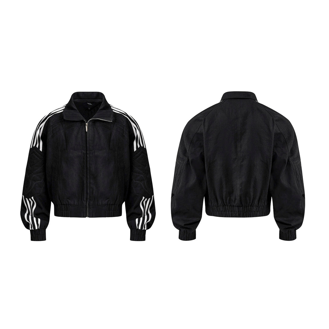- Black original denim jacket, anti-fading four-striped ribbon stitching on the shoulders, three-dimensional stitching pattern.