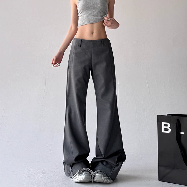 - Straight wide leg opening, helps cover legs and makes them appear straight