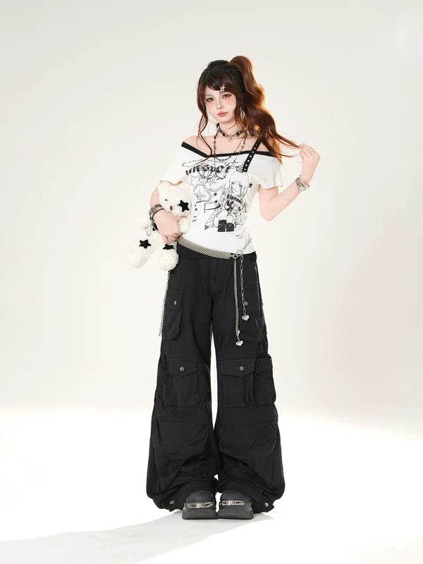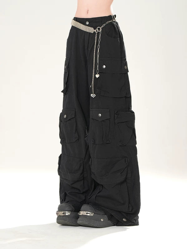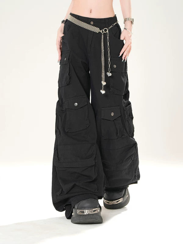سروال شحن متعدد الجيوب واسع الساق