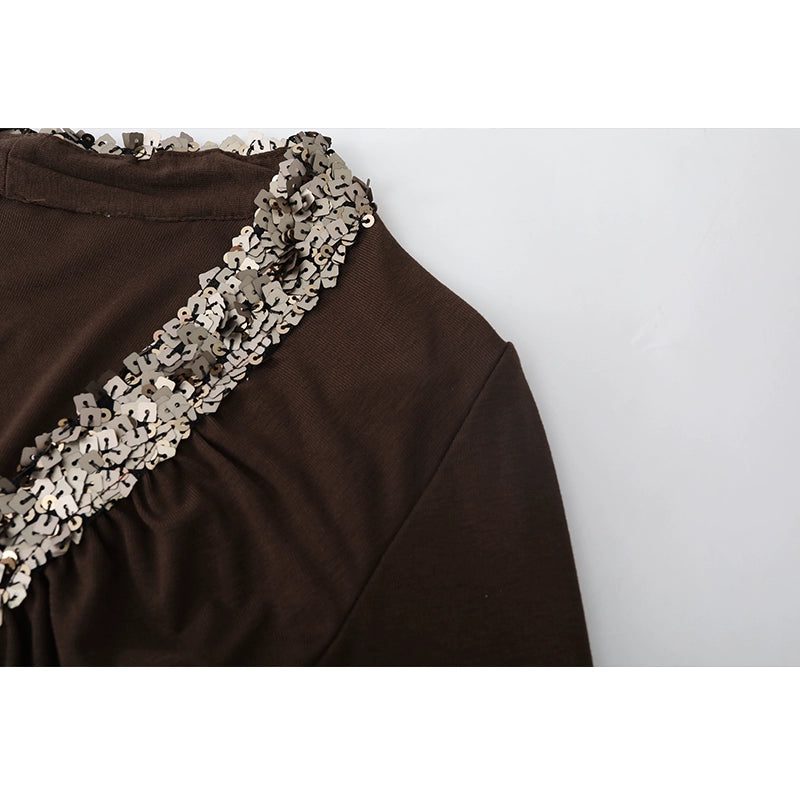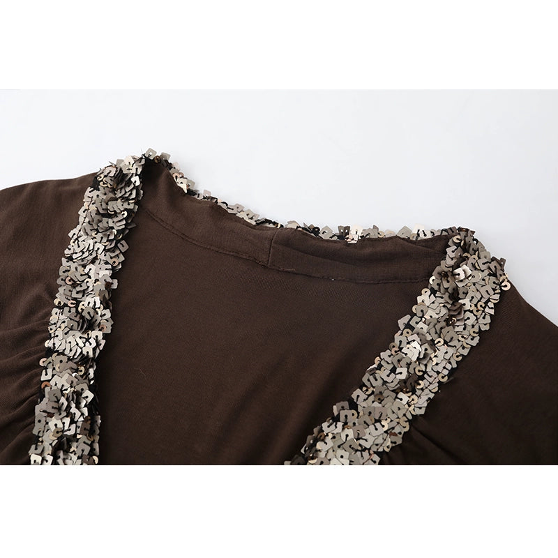 بلوزة طويلة الأكمام على شكل V من تينسيل صوف مع خيوط لامعة