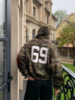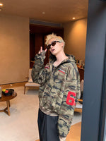 سويت شيرت بقلنسوة مزخرف بتقنية التمويه مع سحاب
