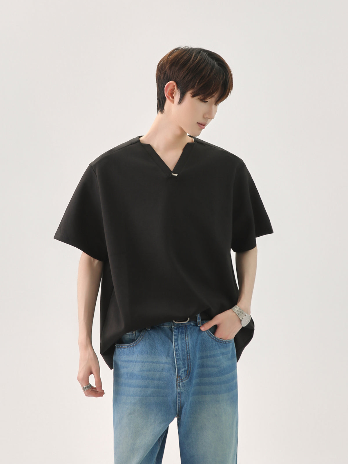 سويت شيرت كاجوال بقلنسوة بتفاصيل معدنية على شكل حرف V