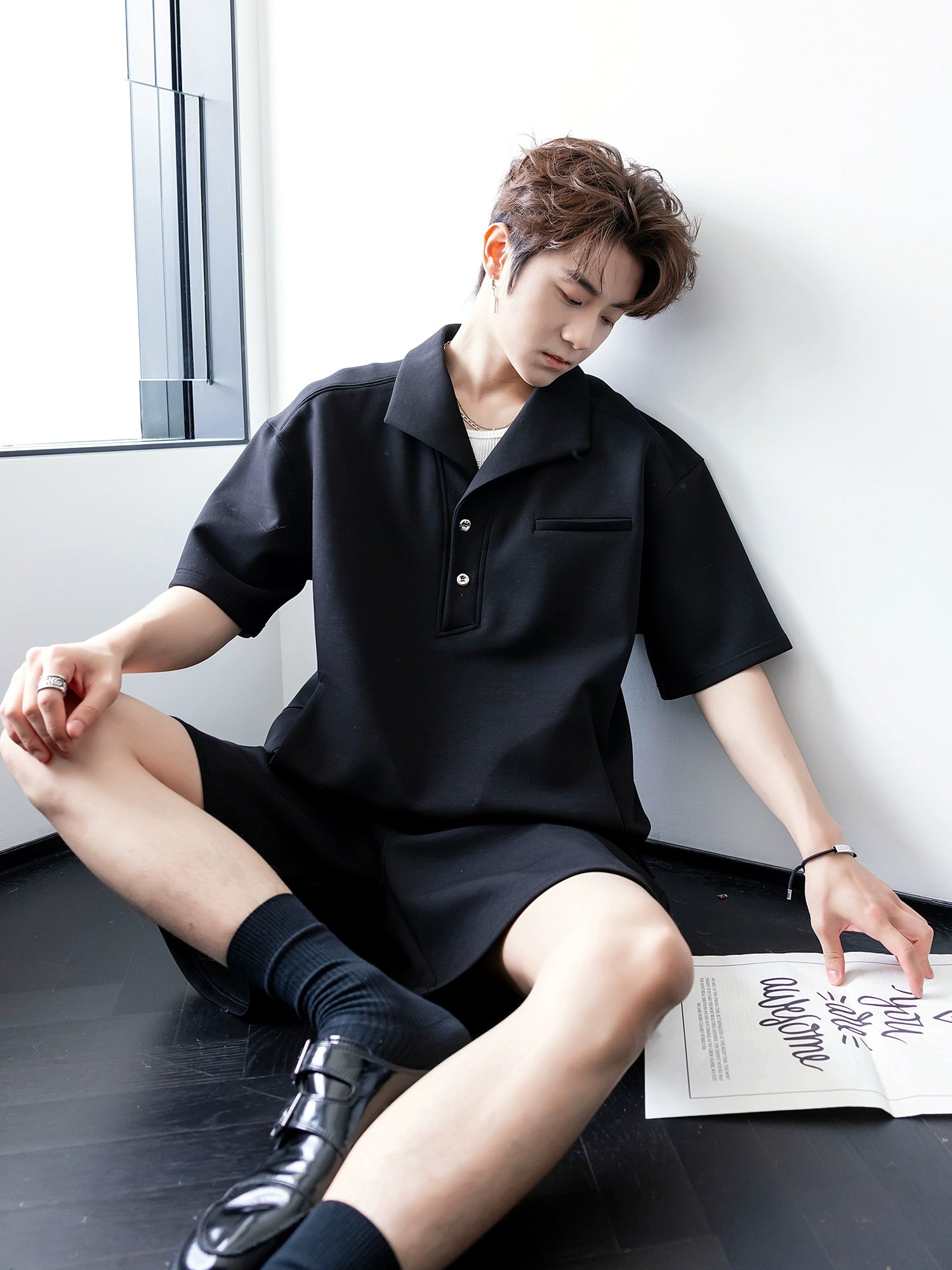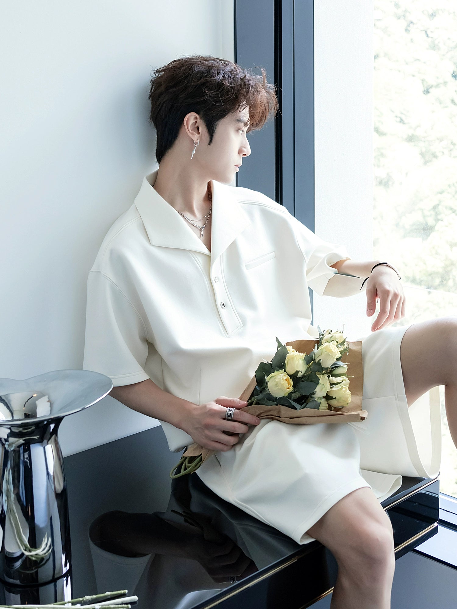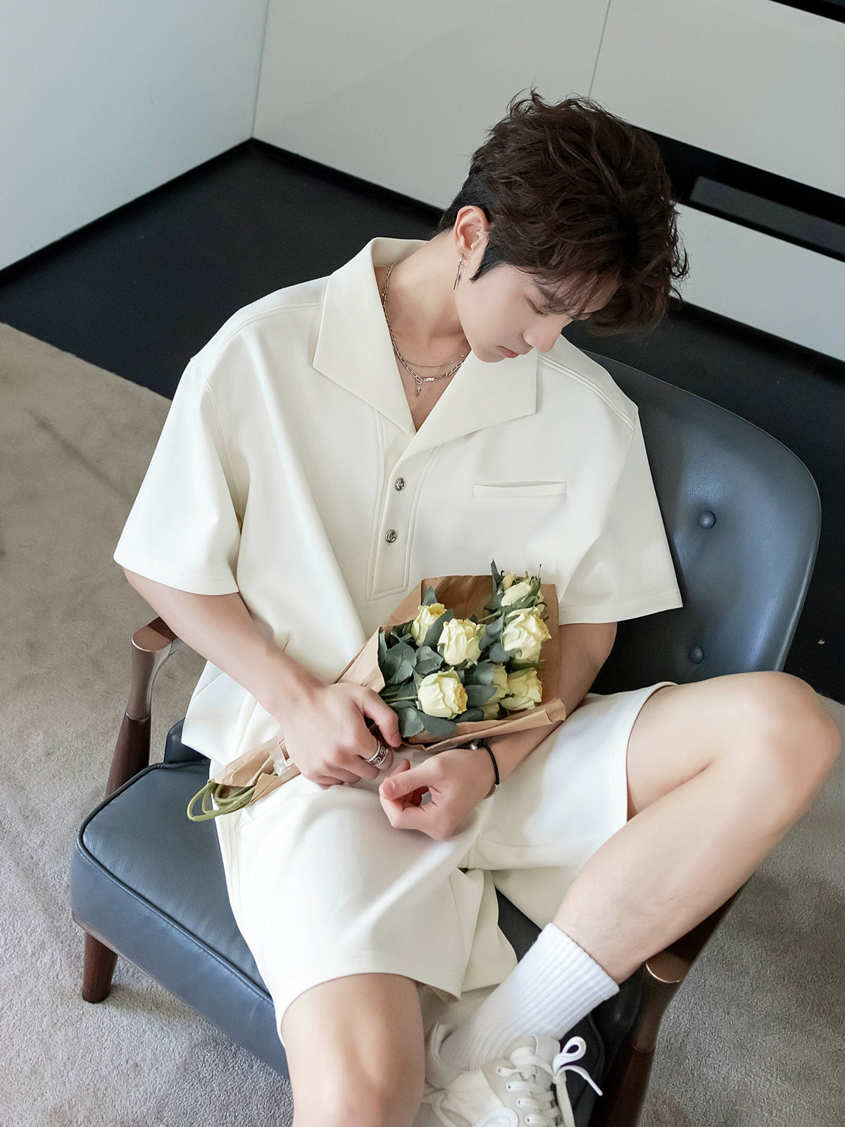 - الياقة: ياقة أنيقة قابلة للطي بمظهر متطور
