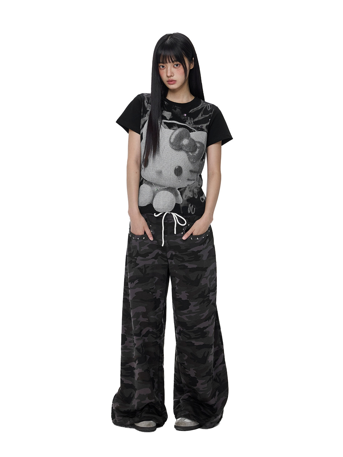 بنطلون واسع غير رسمي بنمط تمويه