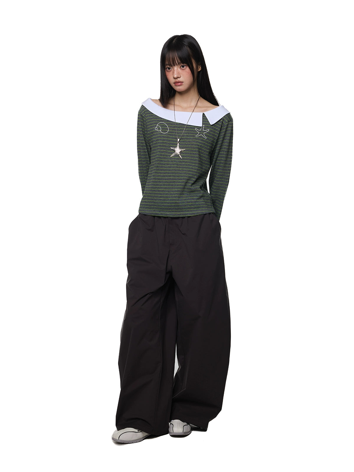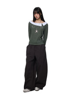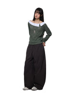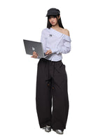 بنطلون كاجوال واسع الساق بحبل سحب